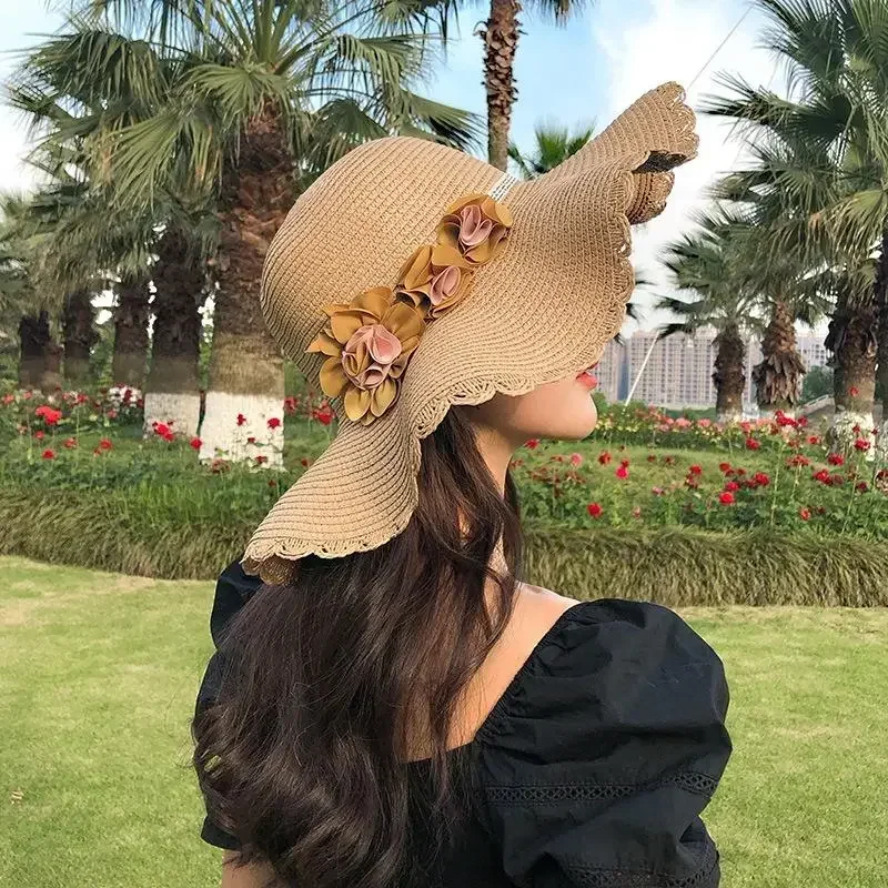 Nuevos sombreros de playa de verano a la moda para niña, sombrero tejido para el sol, nuevo sombrero coreano de flores para mujer, accesorios finos y transpirables, regalos creativos