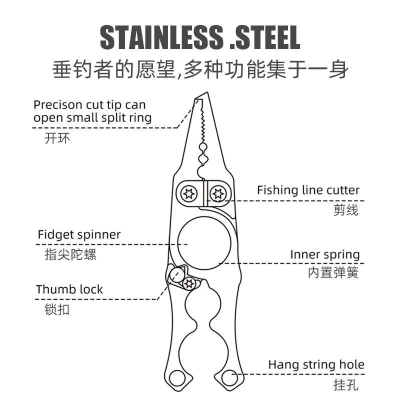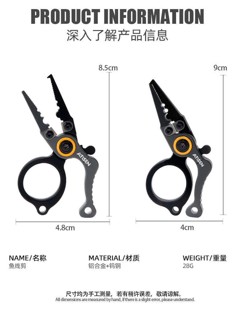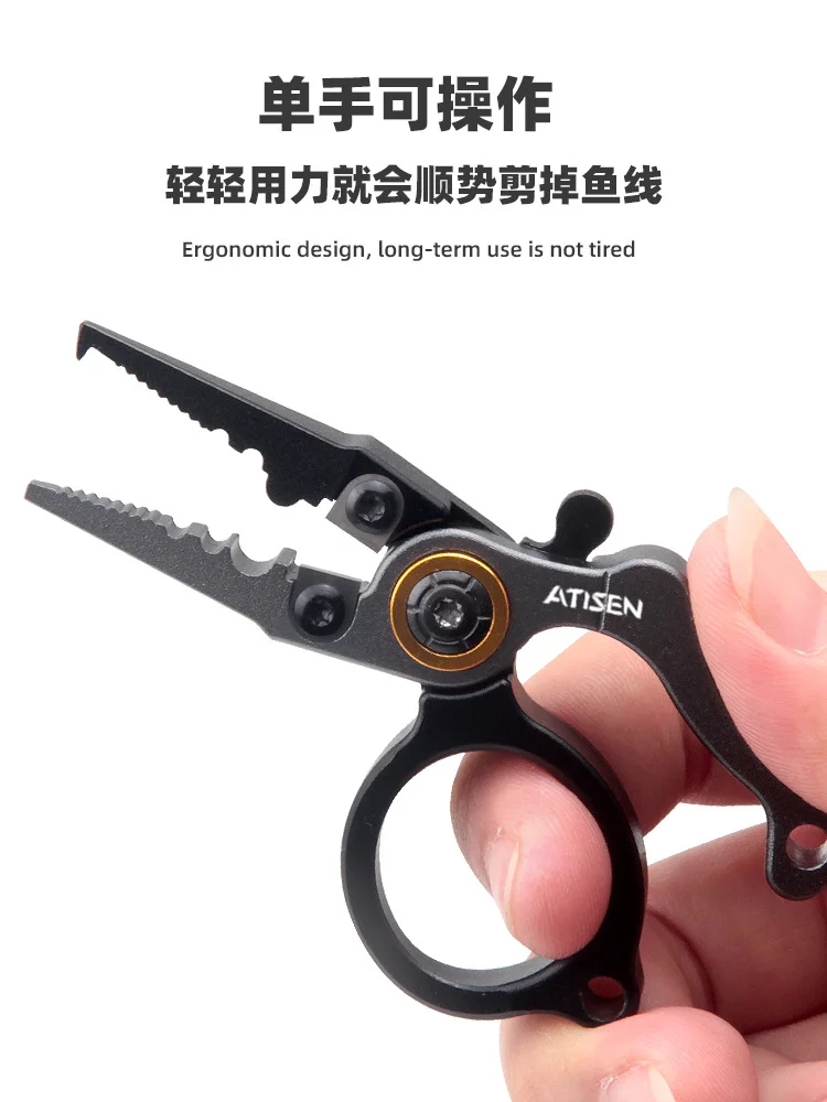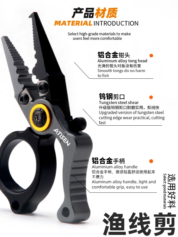02: El diseño de tamaño ampliado puede quitar los anzuelos de la boca del pez para proteger sus manos de los dientes de pez y son muy afilados, por lo que pueden cortar todo el hilo de pescar con mucha facilidad.