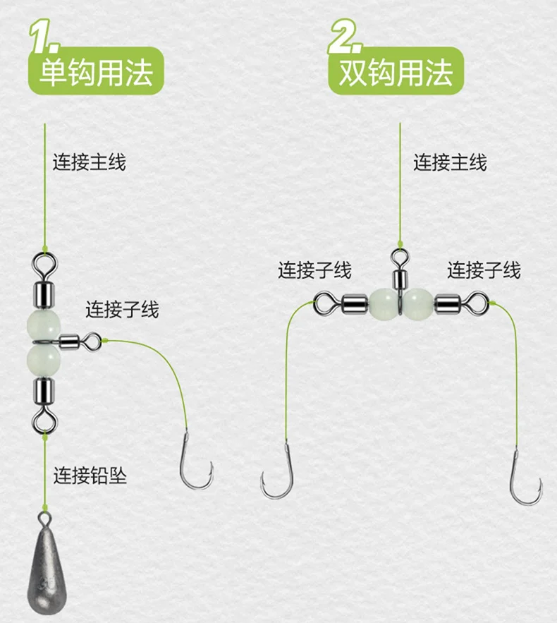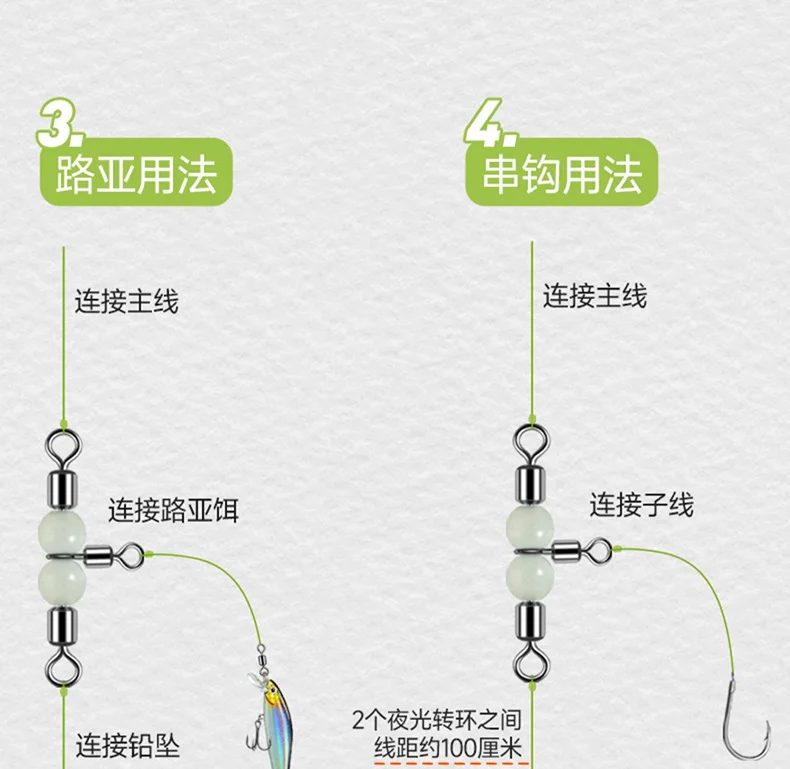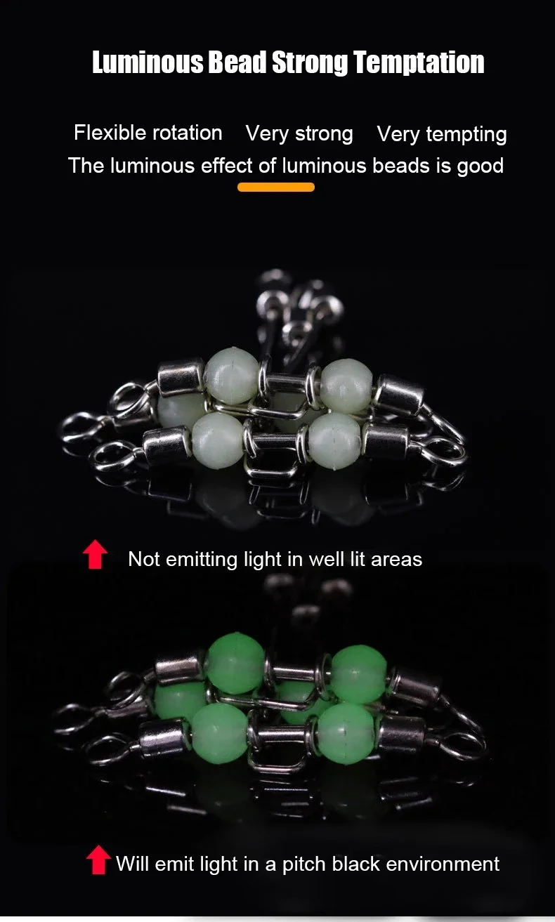 5: Las cuentas del anillo de enlace son luminosas y pueden seguir emitiendo luz en la oscuridad cuando se exponen a una luz intensa, logrando un efecto de señuelo perfecto para los peces.