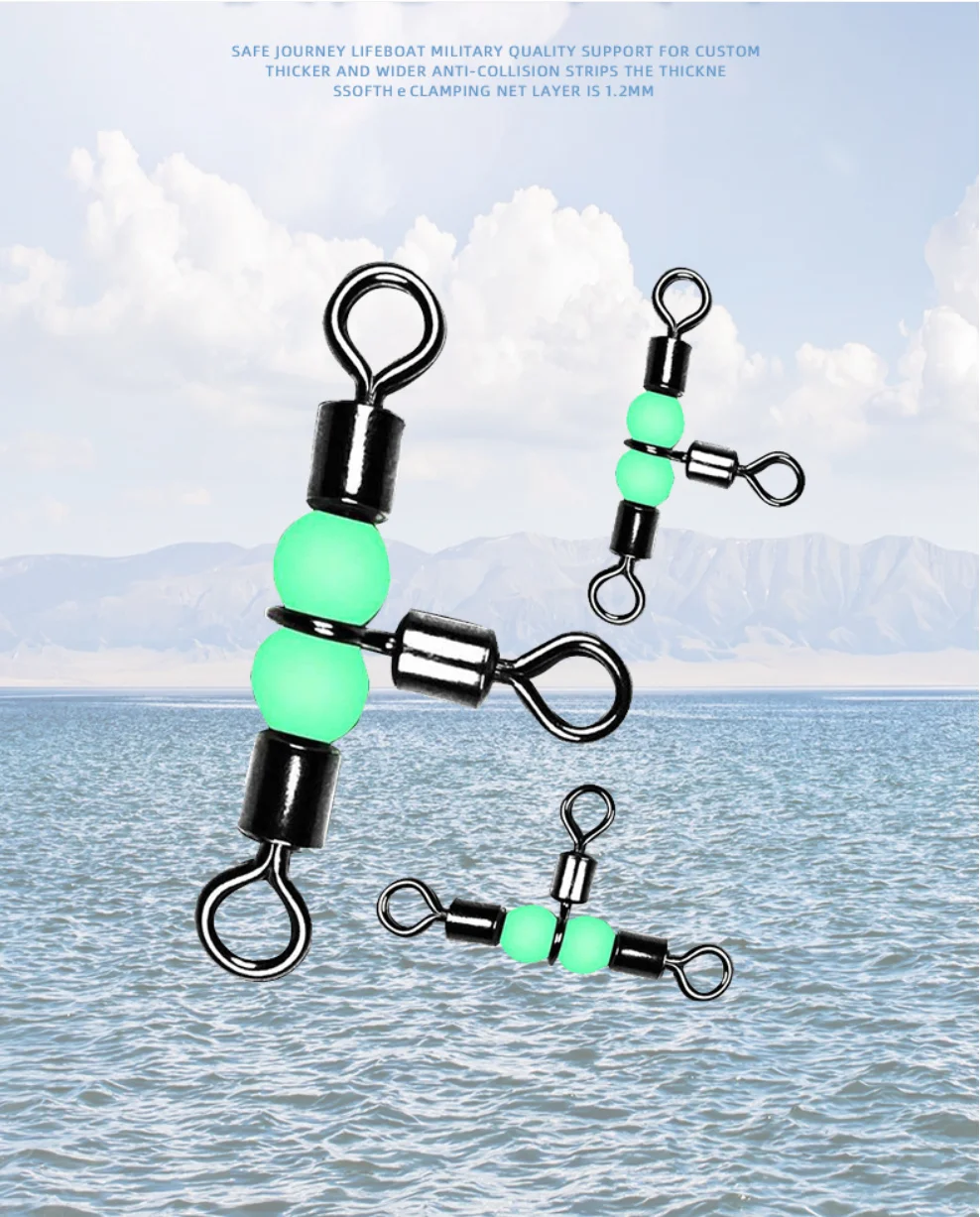 NUNATAK-Anillos rodantes de 3 cabezales en forma de T, broche de pesca en mar, conector a presión de acero inoxidable 304, anillos de pesca reforzados con broche luminoso