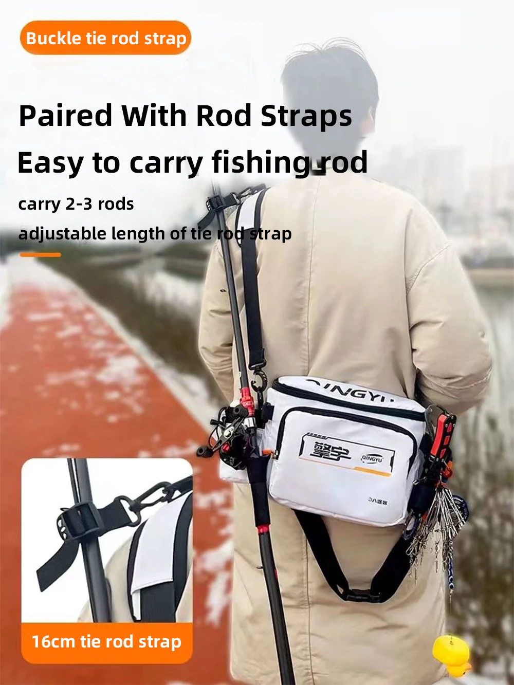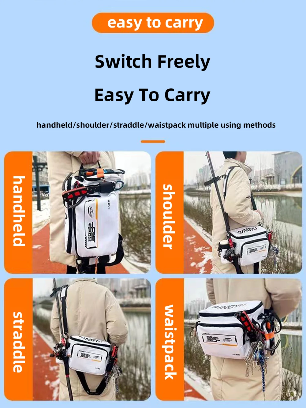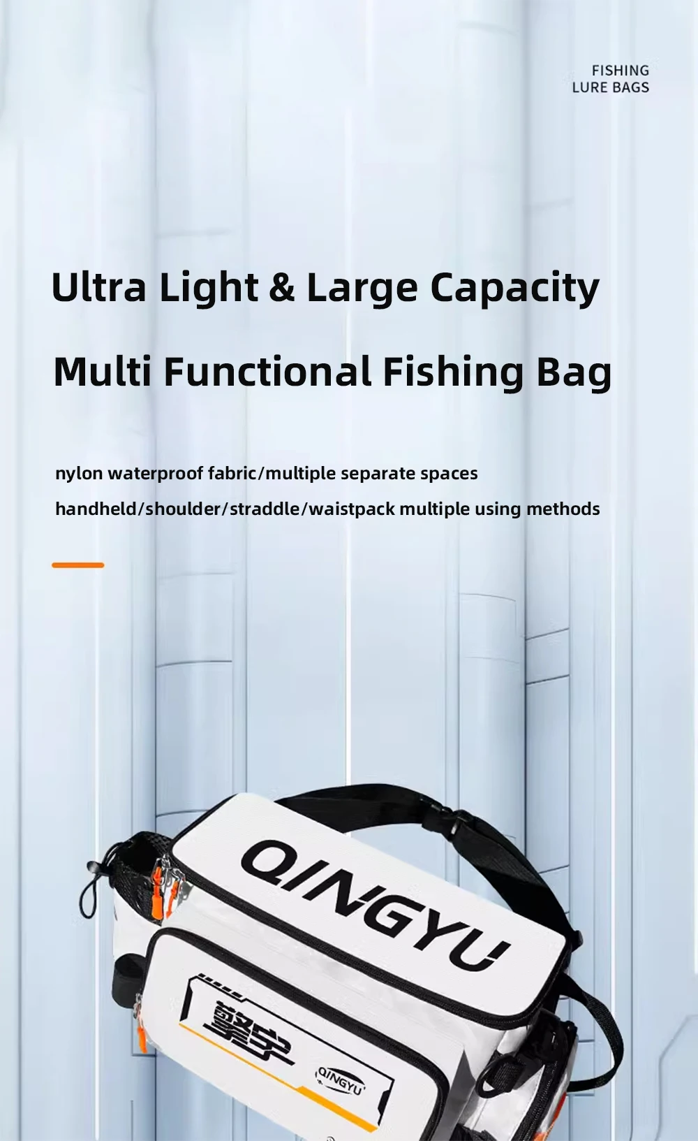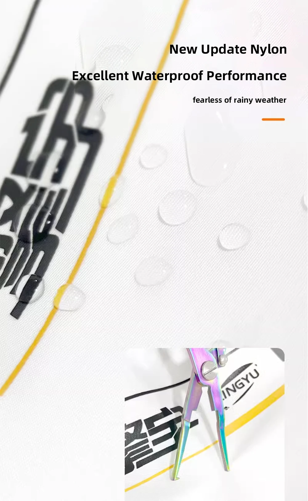 04: El diseño general Blanco/azul de la bolsa de pescado es más de gama alta y atmosférico, que se puede utilizar no solo como bolsa de pesca sino también como bolsa de viaje.