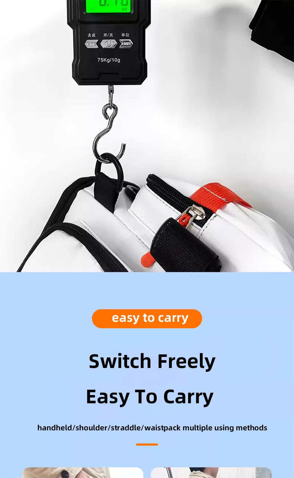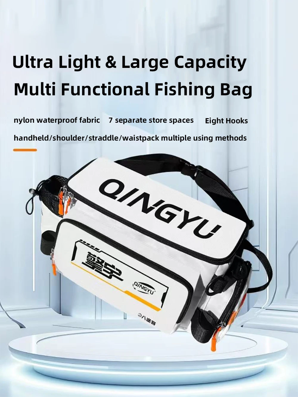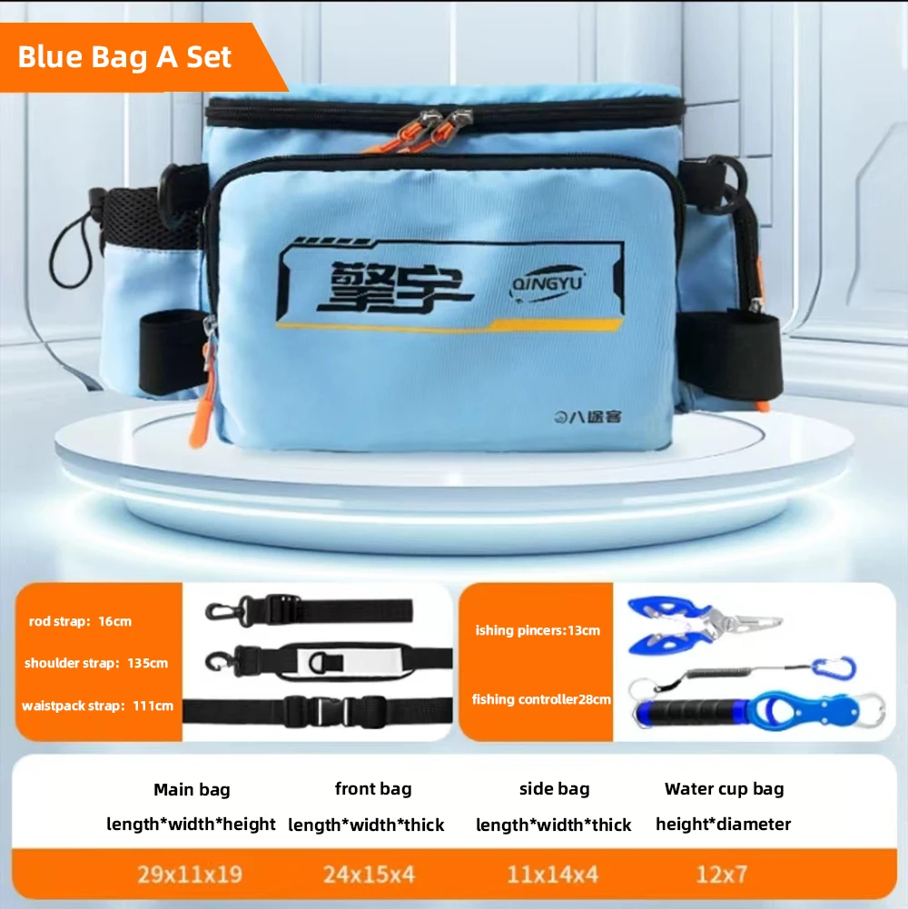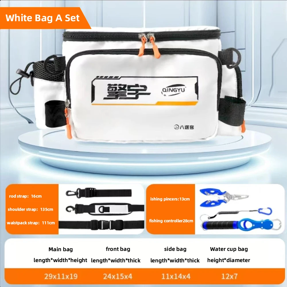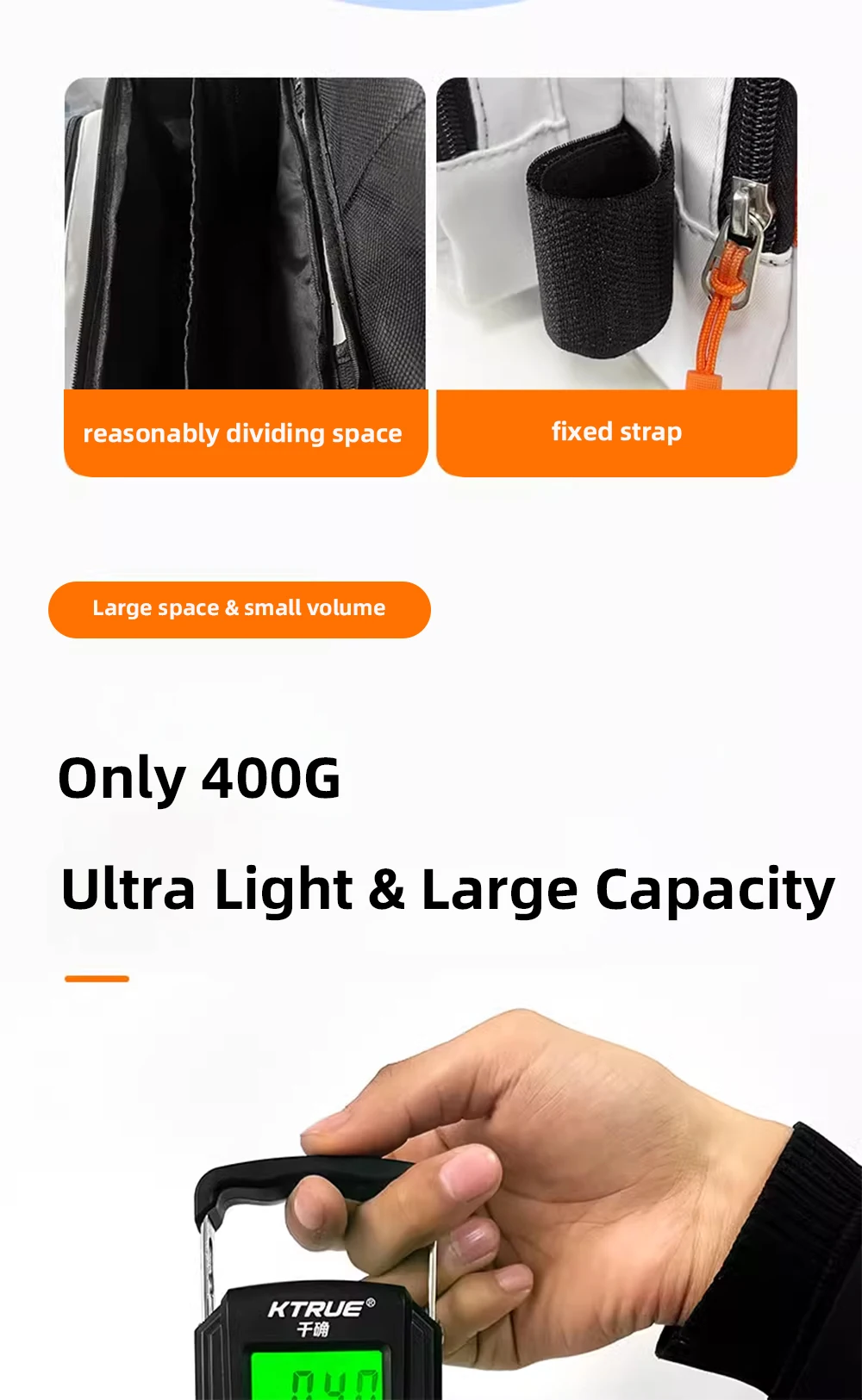 04: El diseño general Blanco/azul de la bolsa de pescado es más de gama alta y atmosférico, que se puede utilizar no solo como bolsa de pesca sino también como bolsa de viaje.