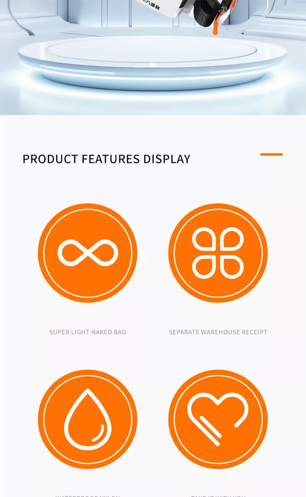03: material de poliéster 1000D sensación de mano más cómoda y más resistente al desgaste y excelente rendimiento impermeable.
