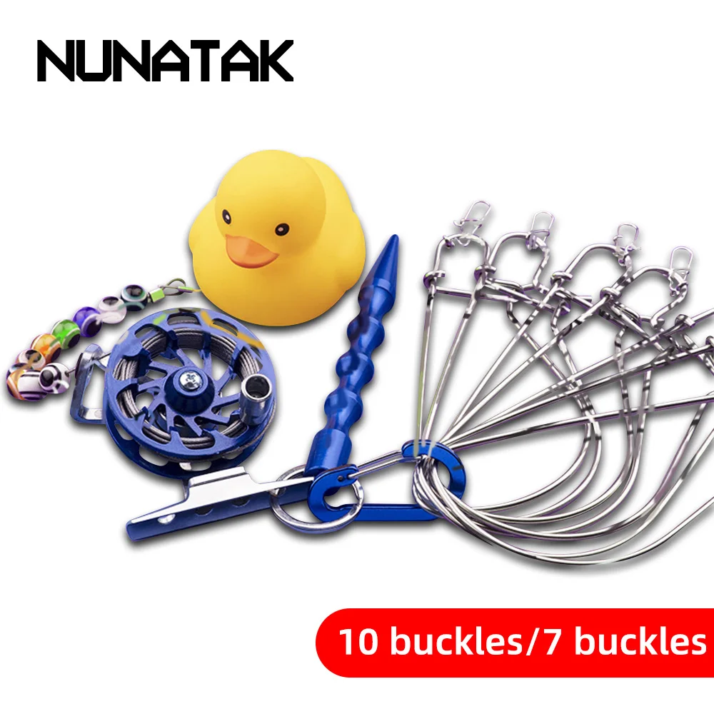 2024 NUNATAK nuevo botón de pescado vivo de acero inoxidable caliente Botón de pesca de Metal caliente 3 colores rojo/azul/dorado 7 botones/10 botones aparejos de pesca de aleación de aluminio