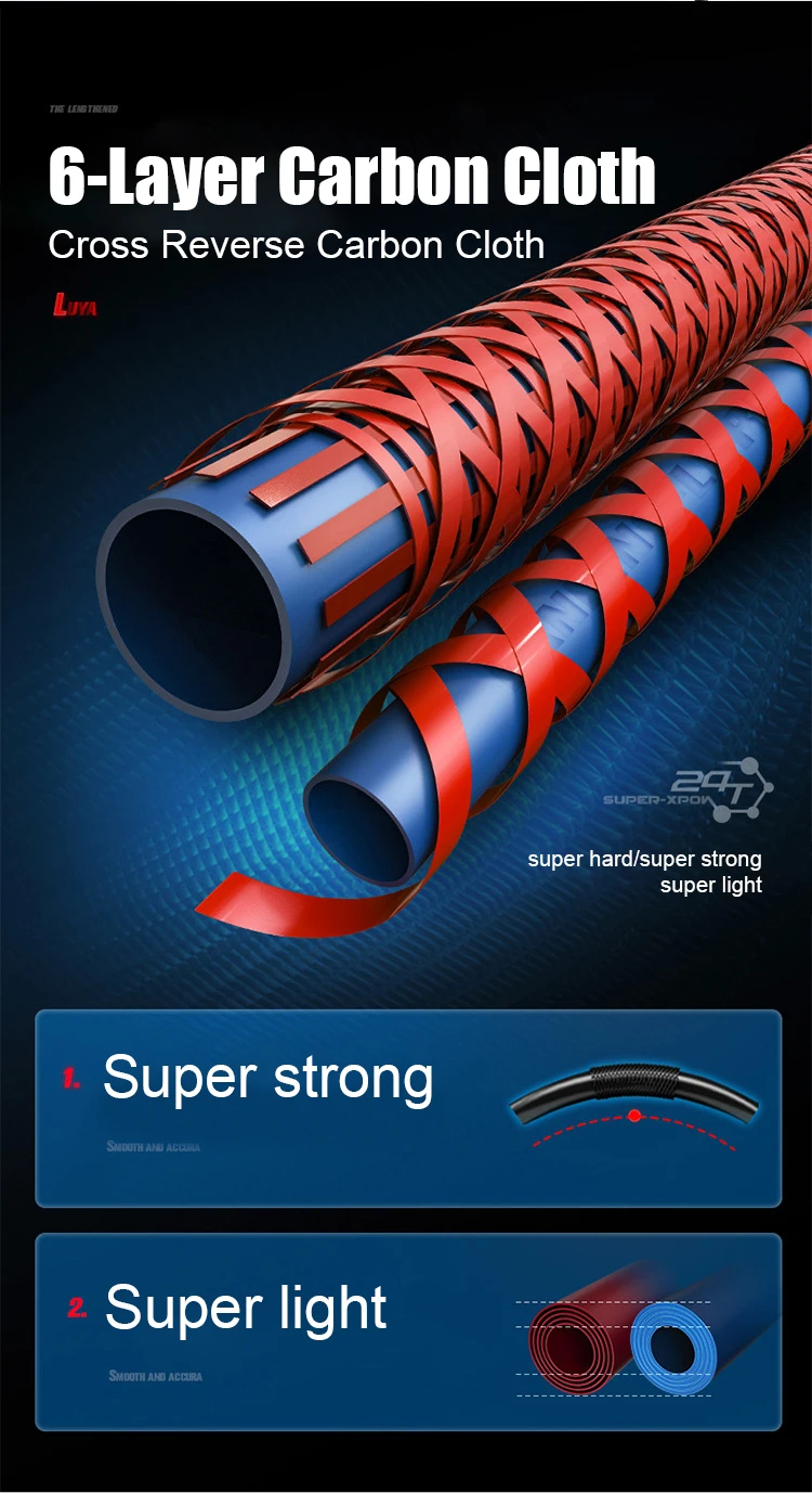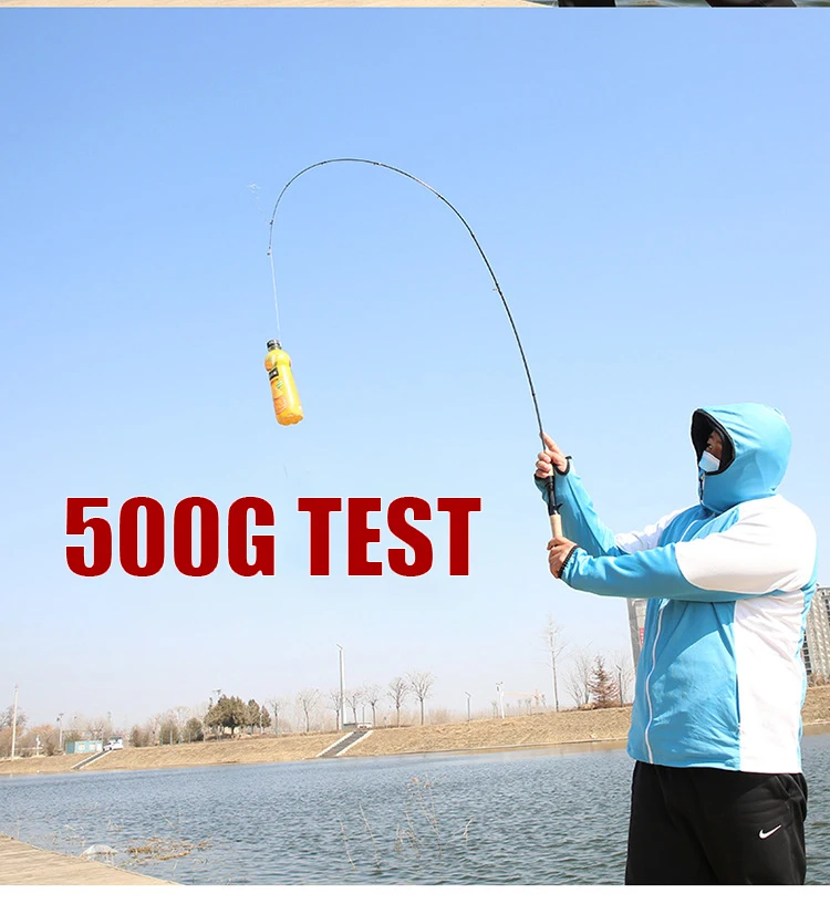 1: Toda la caña de pescar está hecha de material de alto carbono importado y está hecha por un proceso en forma de X, la dureza de la caña alcanza hasta UL, por lo que puede soportar el impacto de peces grandes y atrapar fácilmente peces pequeños, especialmente útil para peces pequeños.