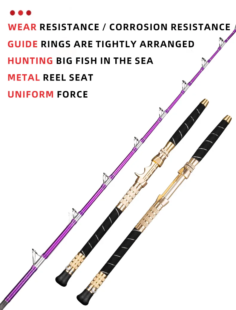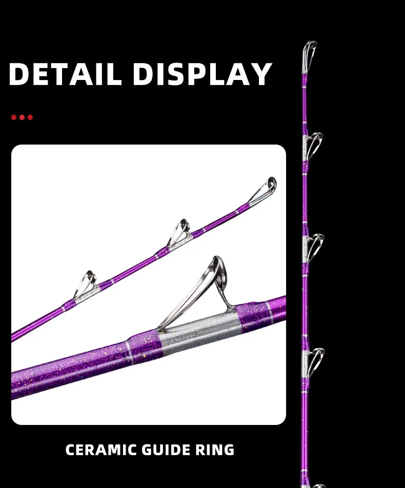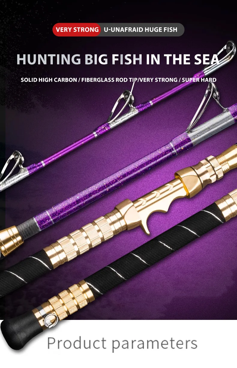 La dureza de esta caña de pescar tiene 100-120 #/150 #/200 #,. 200 # es más duro que 100 #-120 #/150 # se utiliza principalmente para la pesca y la pesca en aguas profundas en alta mar, es la caña de pescar profesional en barcos de mar, ¡Con diferentes opciones de dureza y longitud disponibles!