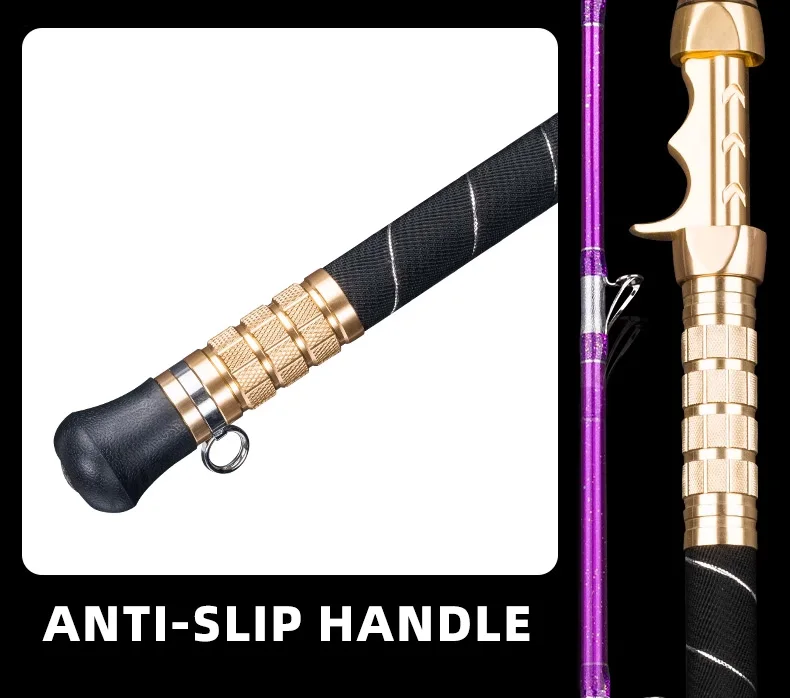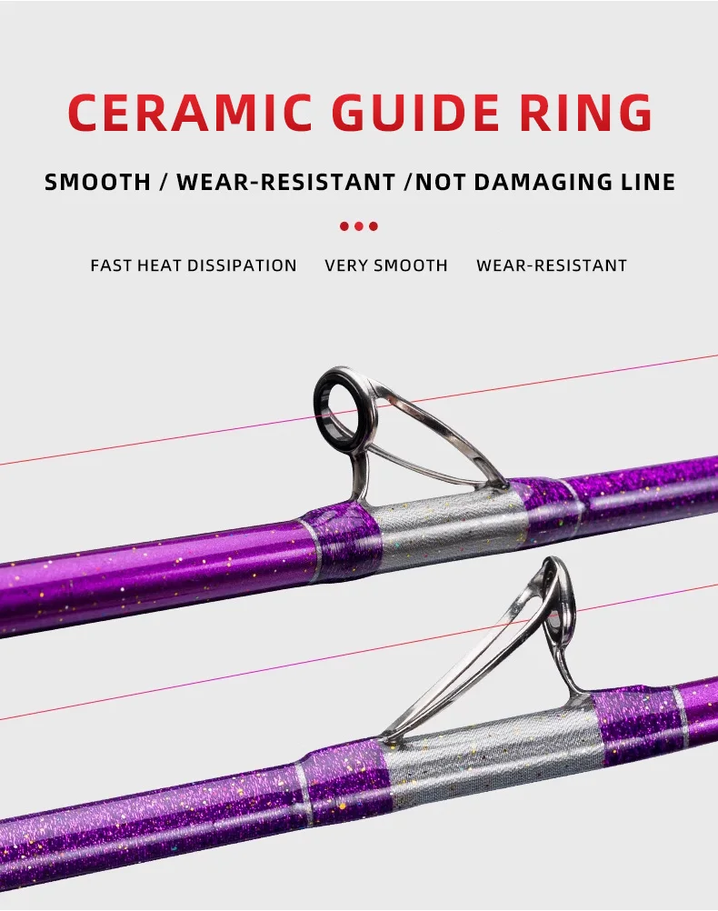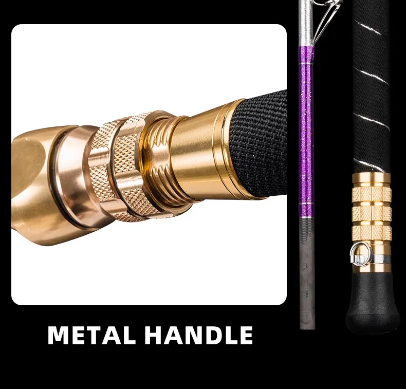 7: Esta varilla tiene 2 modelos: fundición hilado + 3 longitudes: 1,5 M/1,65 M/1,8 M , 3 Dureza: 100 #-120 #/150 #/200 # el diseño general de color púrpura bajo hace que la caña de pescar se vea de gama alta, atmosférica y exclusiva, puede elegir según sus necesidades.