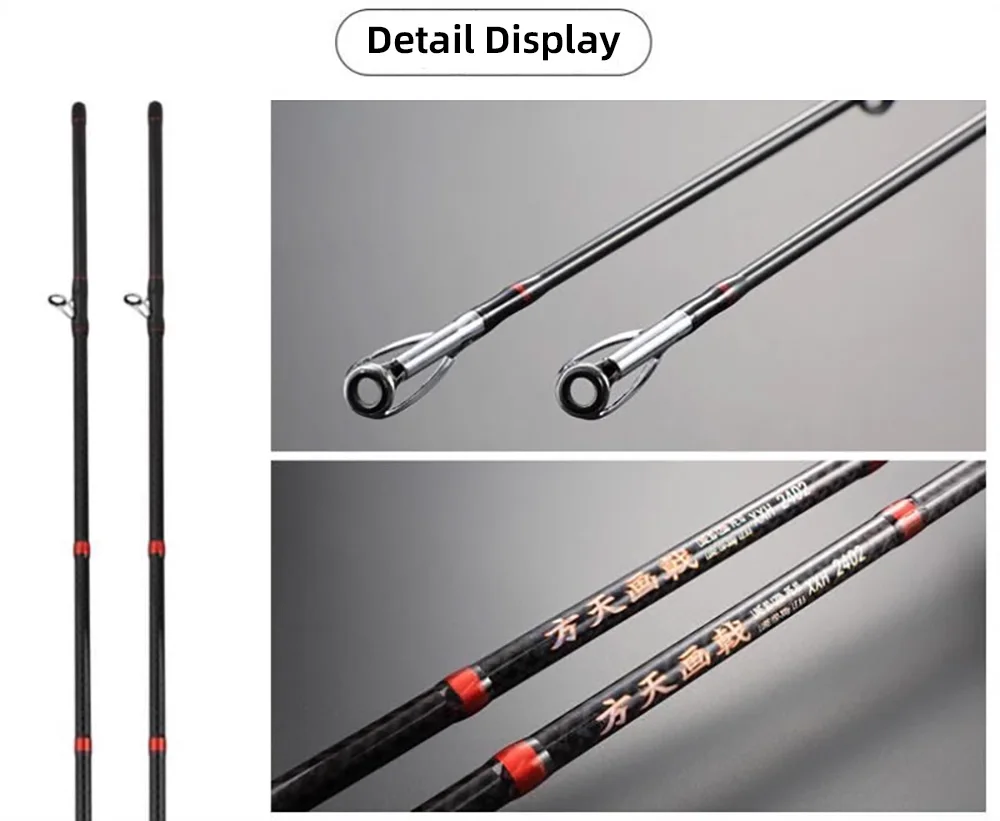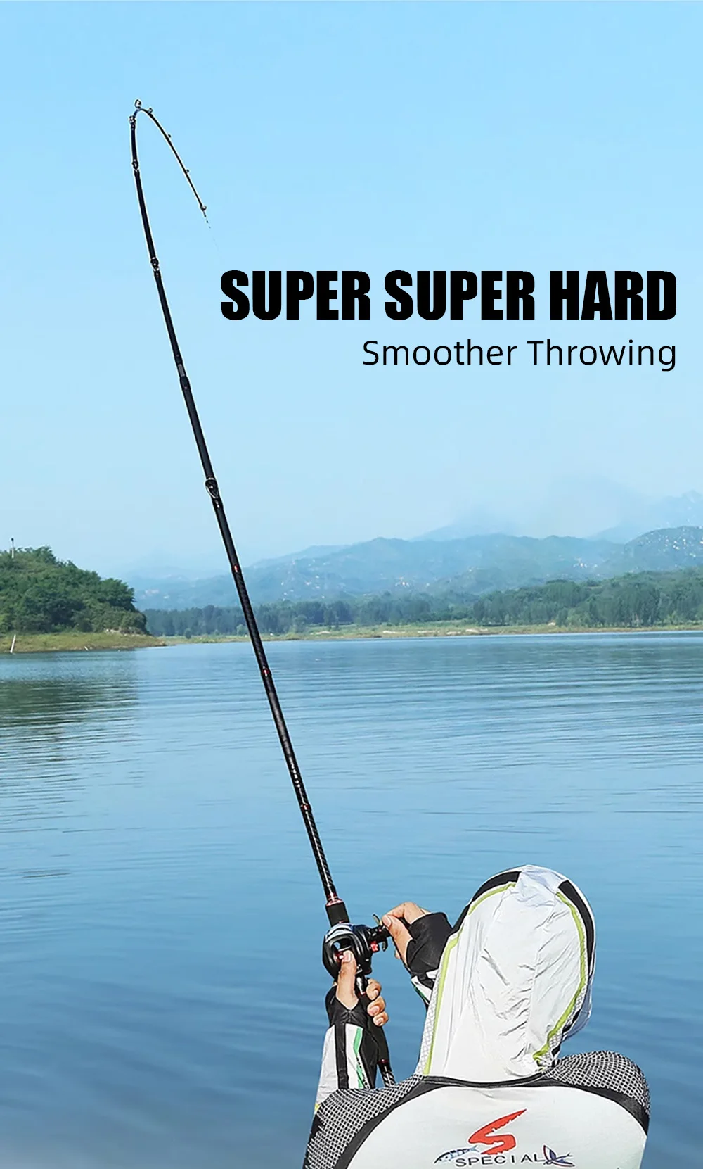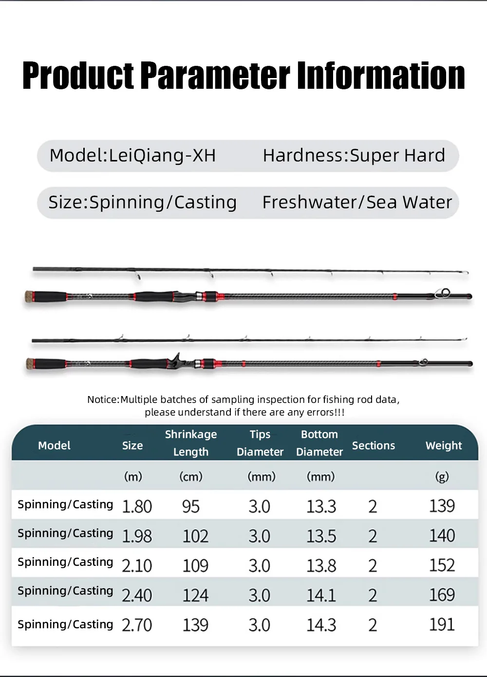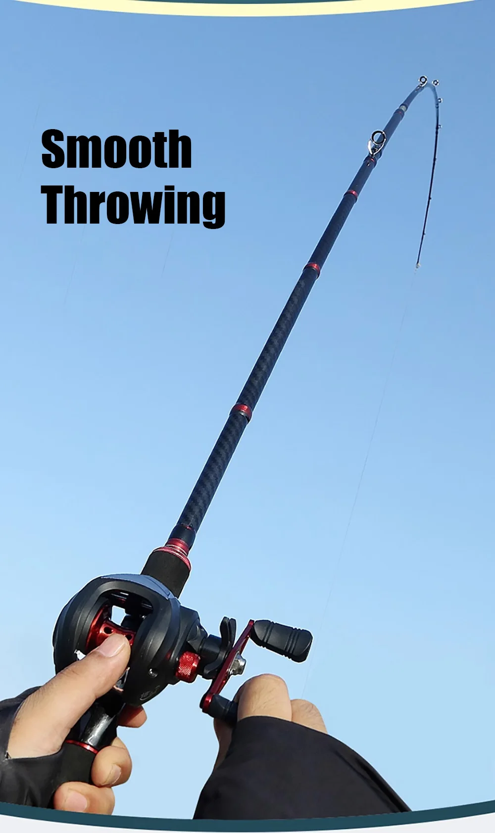 1: Toda la caña de pescar está hecha de material de alto carbono importado y está hecha por un proceso en forma de X, la dureza de la caña alcanza XH/XXH y el peso del señuelo puede alcanzar demasiado 120g, lo que garantiza que toda la caña de pescar sea más ligera, más dura, lidiando fácilmente con los golpes de peces grandes.