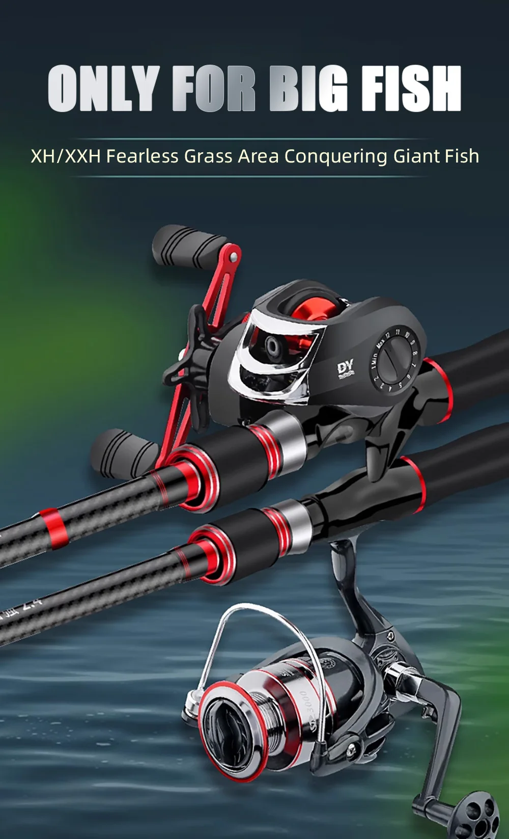 1: Toda la caña de pescar está hecha de material de alto carbono importado y está hecha por un proceso en forma de X, la dureza de la caña alcanza XH/XXH y el peso del señuelo puede alcanzar demasiado 120g, lo que garantiza que toda la caña de pescar sea más ligera, más dura, lidiando fácilmente con los golpes de peces grandes.