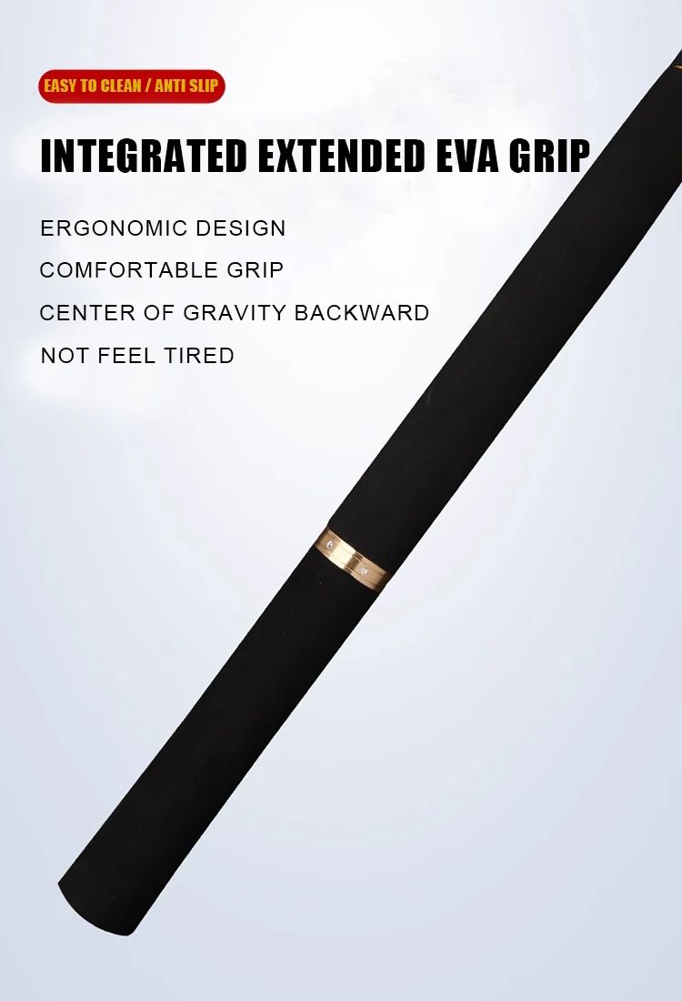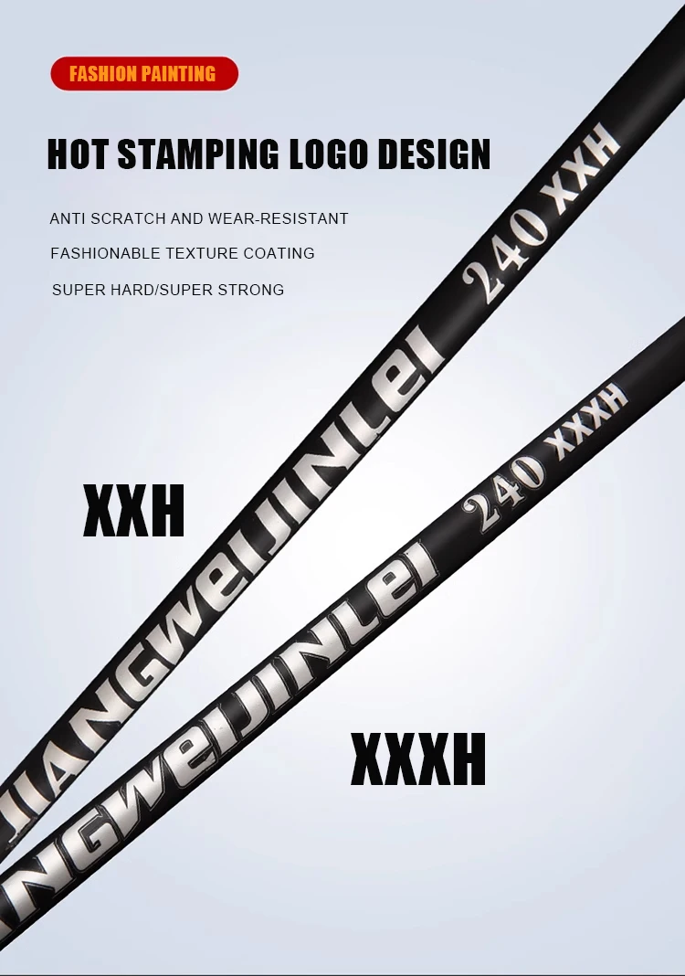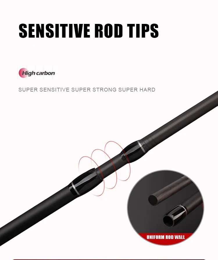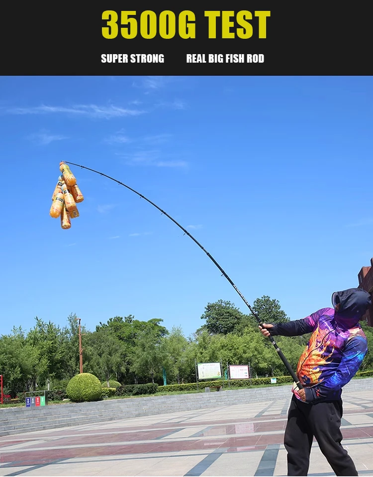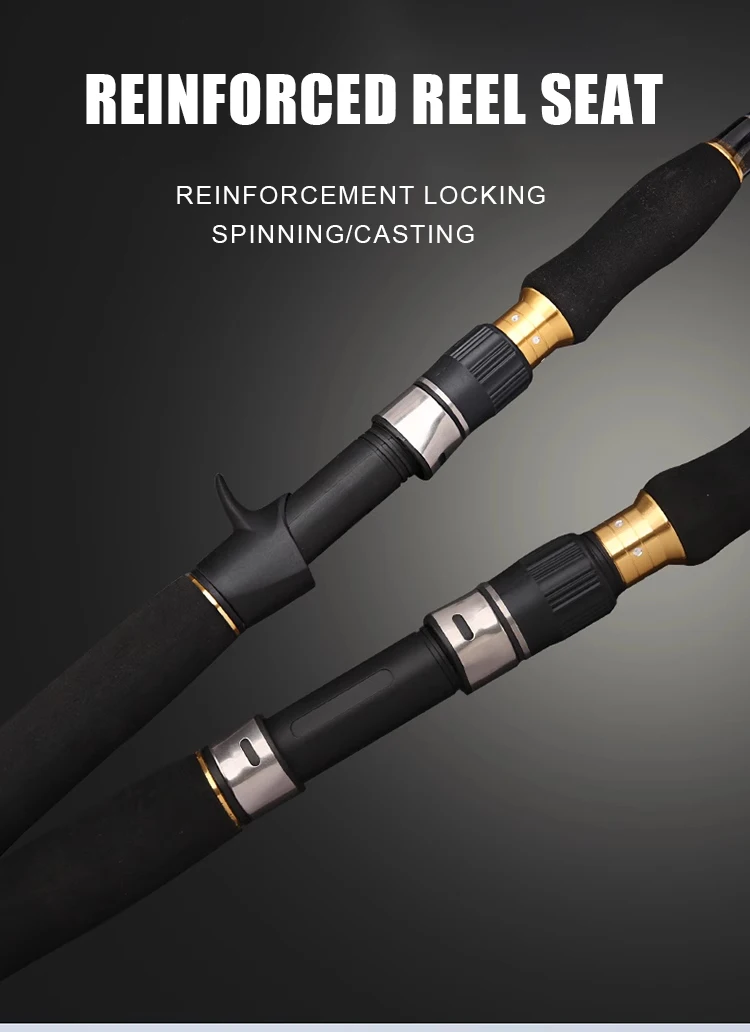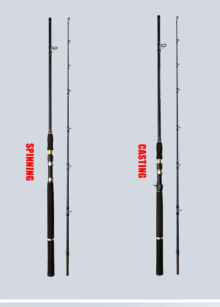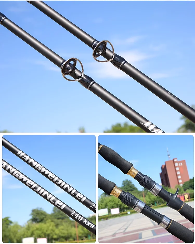 1: Toda la caña de pescar está hecha de material de alto carbono importado y está hecha por un proceso en forma de X, la dureza de la caña alcanza XXH/XXXH y el peso del señuelo puede alcanzar demasiado 200g, lo que garantiza que toda la caña de pescar sea más ligera, más dura, lidiando fácilmente con golpes de peces grandes.