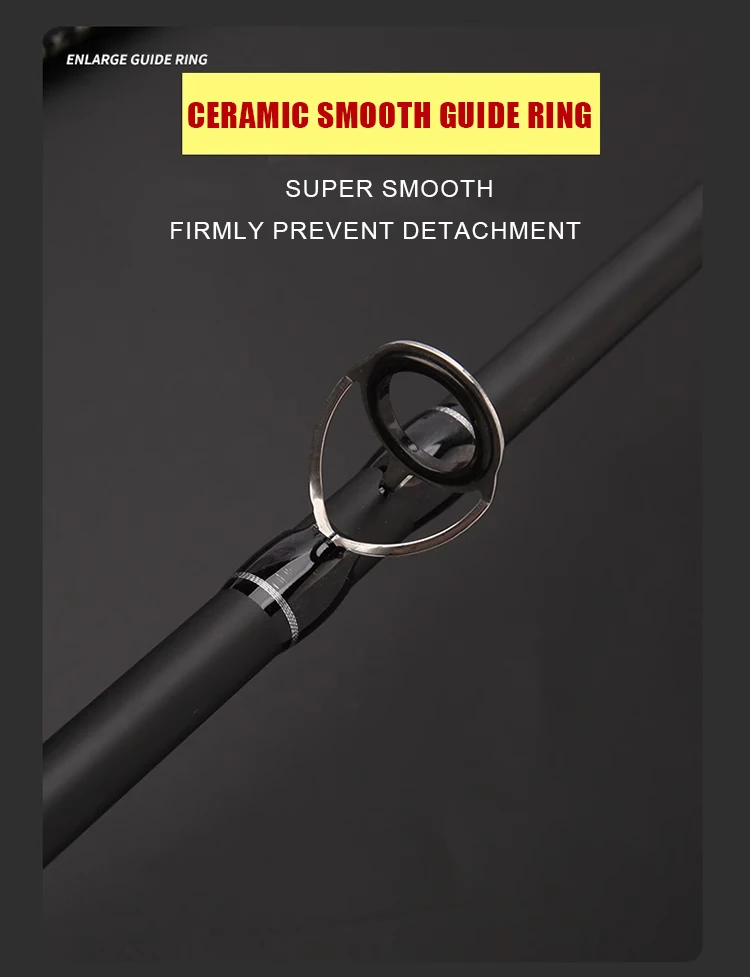 2: La parte delantera y trasera de cada anillo guía de la caña de pescar están engrosadas, lo que hace que la caña de pescar sea más fuerte en su conjunto, Y tiene un buen rendimiento, ya sea un tiro largo o un lugar con muchos obstáculos.