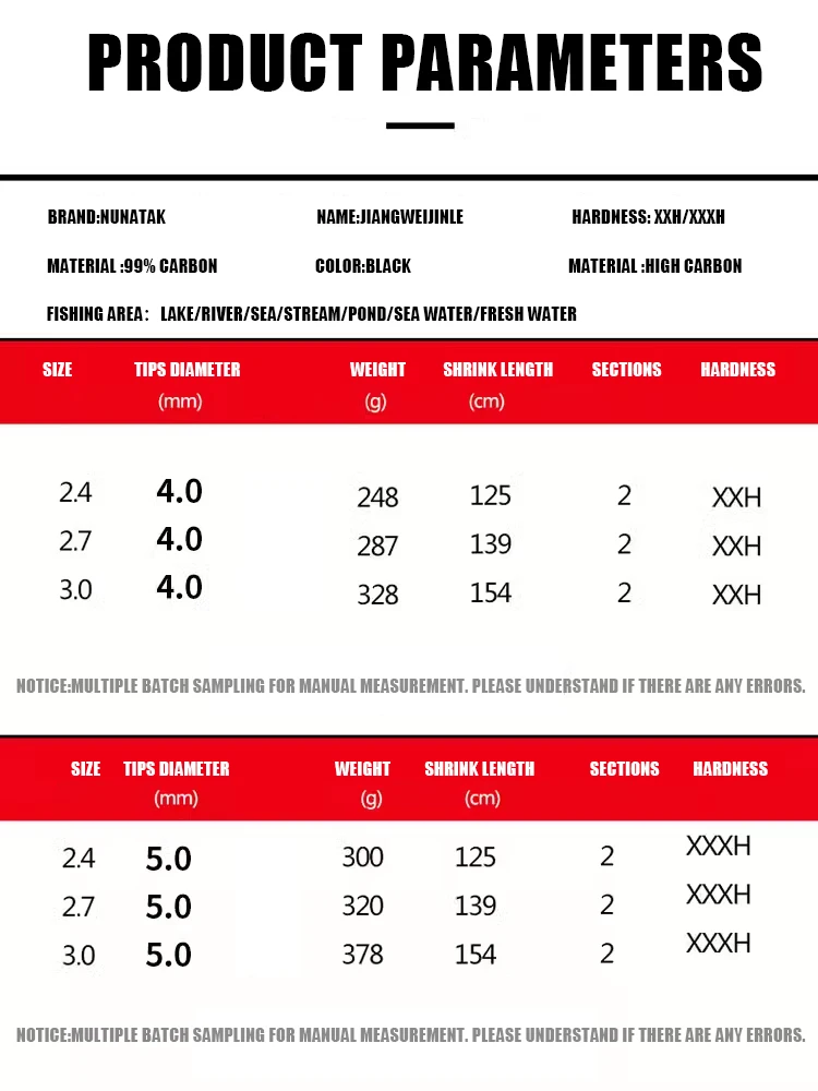 2: Esta caña de pescar tiene 2,4 M/M 2,7/3,0 M, este enlace ahora solo vende 2,4 M, si necesita 2,7 M/3,0 M, póngase en contacto con el personal de nuestra tienda.