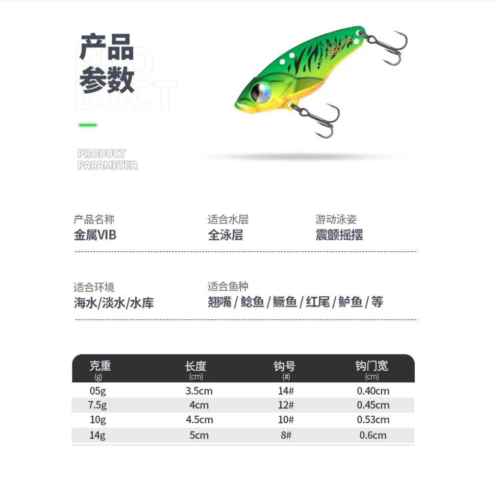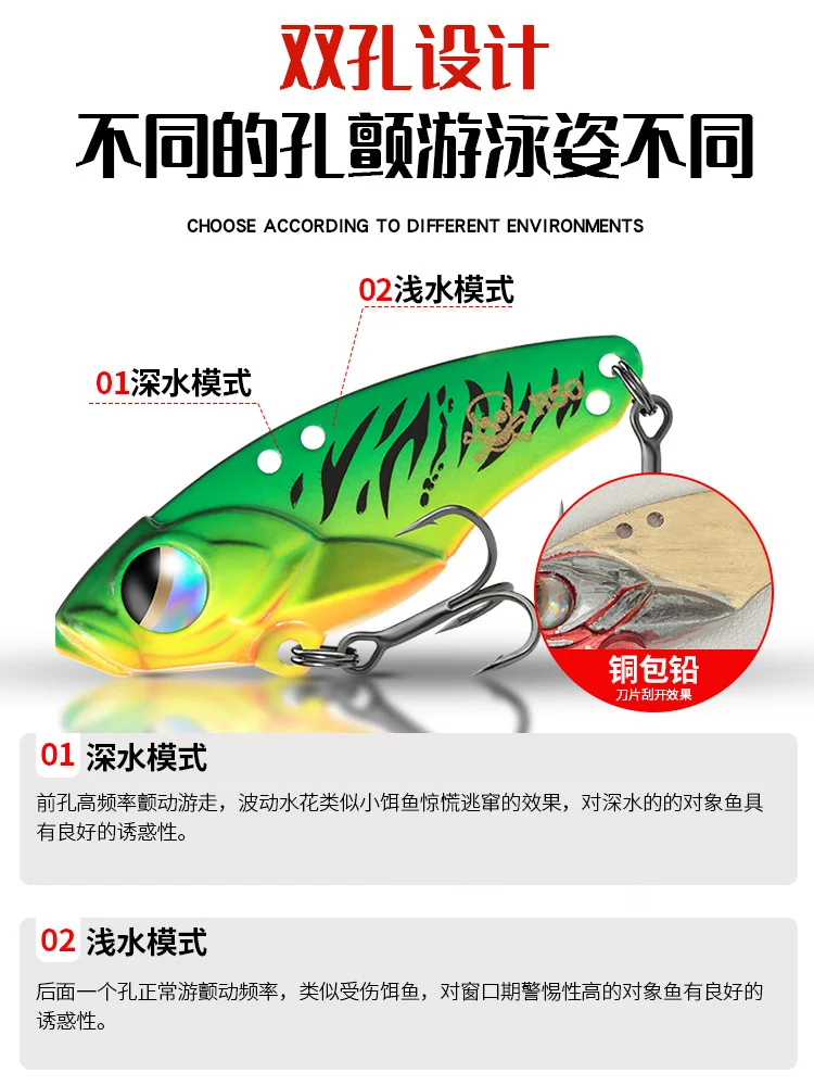 08: Estos cebos Metal VIB son cebos muy prácticos que pueden capturar diferentes especies de peces y adaptarse a diferentes métodos de pesca en diferentes entornos.