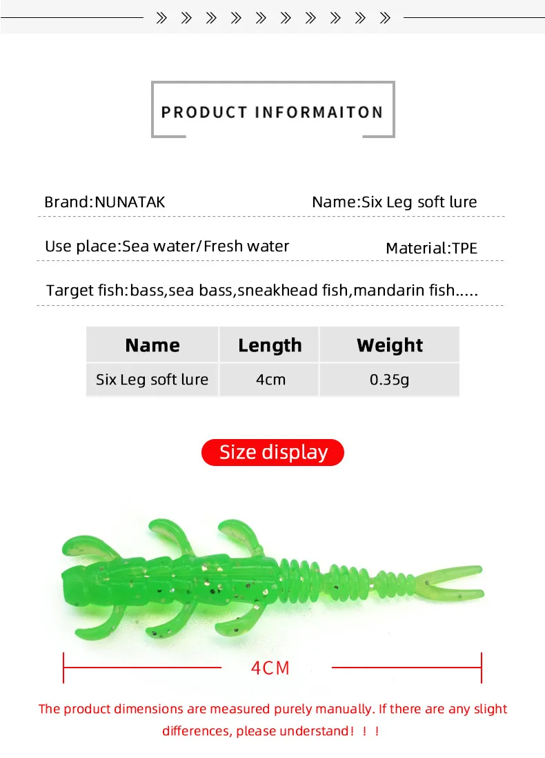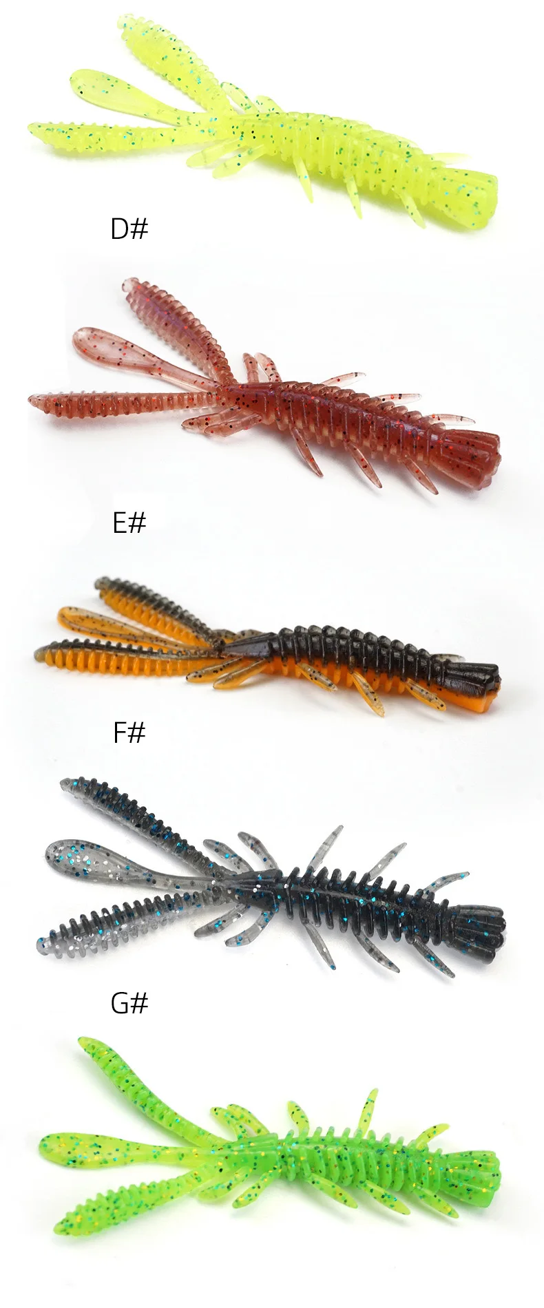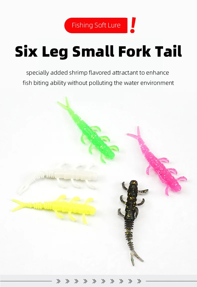 6 Legs Tails Length:4CM Weight:0.35g 30P-1Bag Target Fish:bass/mandarin fish/trout/snakehead ..... and aggressive fish.