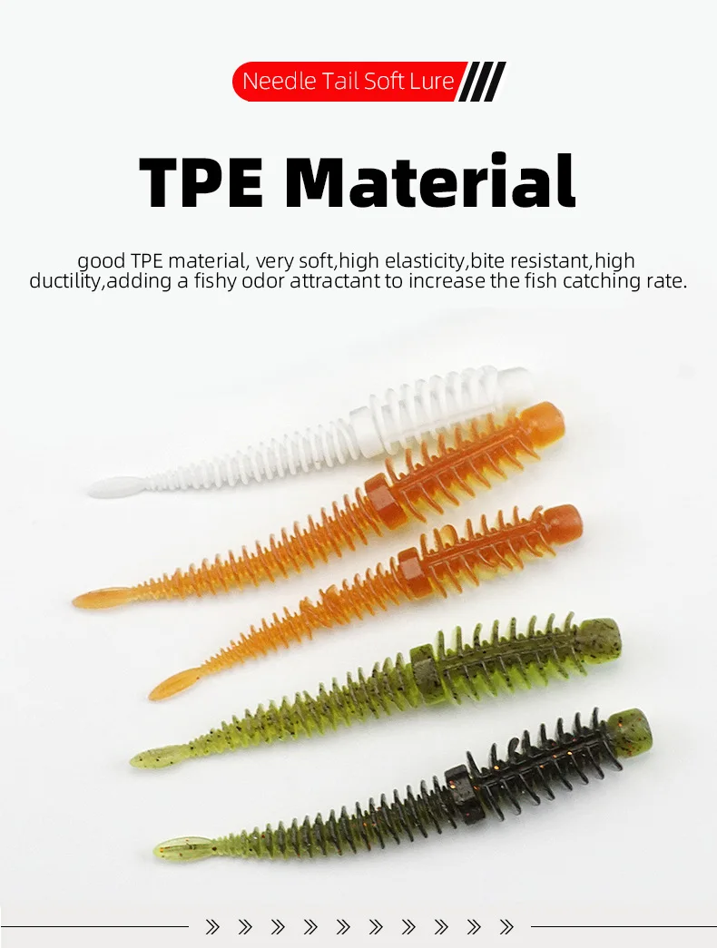 01: Bait material is TPE, very soft and high elasticity resistant to pulling, tearing, and biting, can be reused multiple times.