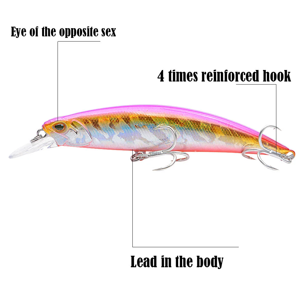 2.Simulación (laser): esta piel de pez mulation la hace más atractiva.3. Anillos de tracción fuerte: fortalecen el doble círculo y aumentan la resistencia a la tracción.Ojos de pez 4.3D y revestimiento láser: ojos de simulación 3D, más tentadores y mejor reflectantes.5: Lanzamiento a largas distancias: La distancia de lanzamiento es demasiado lejana buscando un alcance más amplio y capturando más peces.6: Hundimiento: estos señuelos son cebos flotantes que pueden capturar peces con diferentes profundidades de agua, al nadar se producirán ondas grandes que atraen peces grandes al atacar.7: Diferentes 27 colores: este total de señuelo tiene 27 colores que pueden satisfacer la elección de color de la mayoría de las personas y adaptarse a todos los entornos acuáticos.Más detalles:Peso: 17,8 G Longitud: 10,5 CM Colores: 01/02/04/05/06/07/08 Todo hundidoPeso B: 30G Longitud: 9,5 CM Colores: 01/02/03/04/0/06/07/0/09/10 AllSinkingPeso C: 30G Longitud: 10,2 CM Colores: 01/02/03/04/05/06/07/0/09 AllSinkingPeso del paquete: alrededor de 60 g