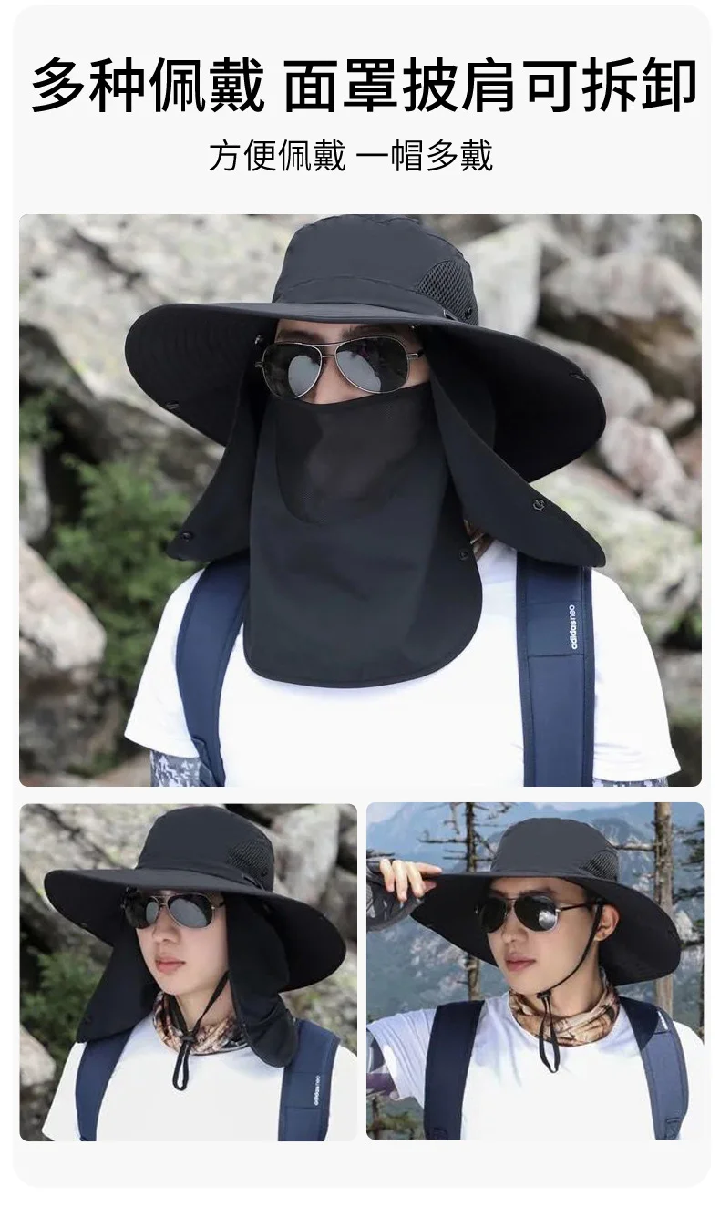 02: Diseño de chal y toalla facial de modelos B con bloqueo UV de 360 grados,El chal y el ala son desmontables.