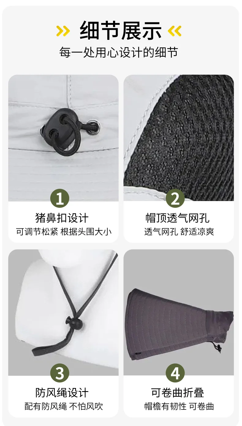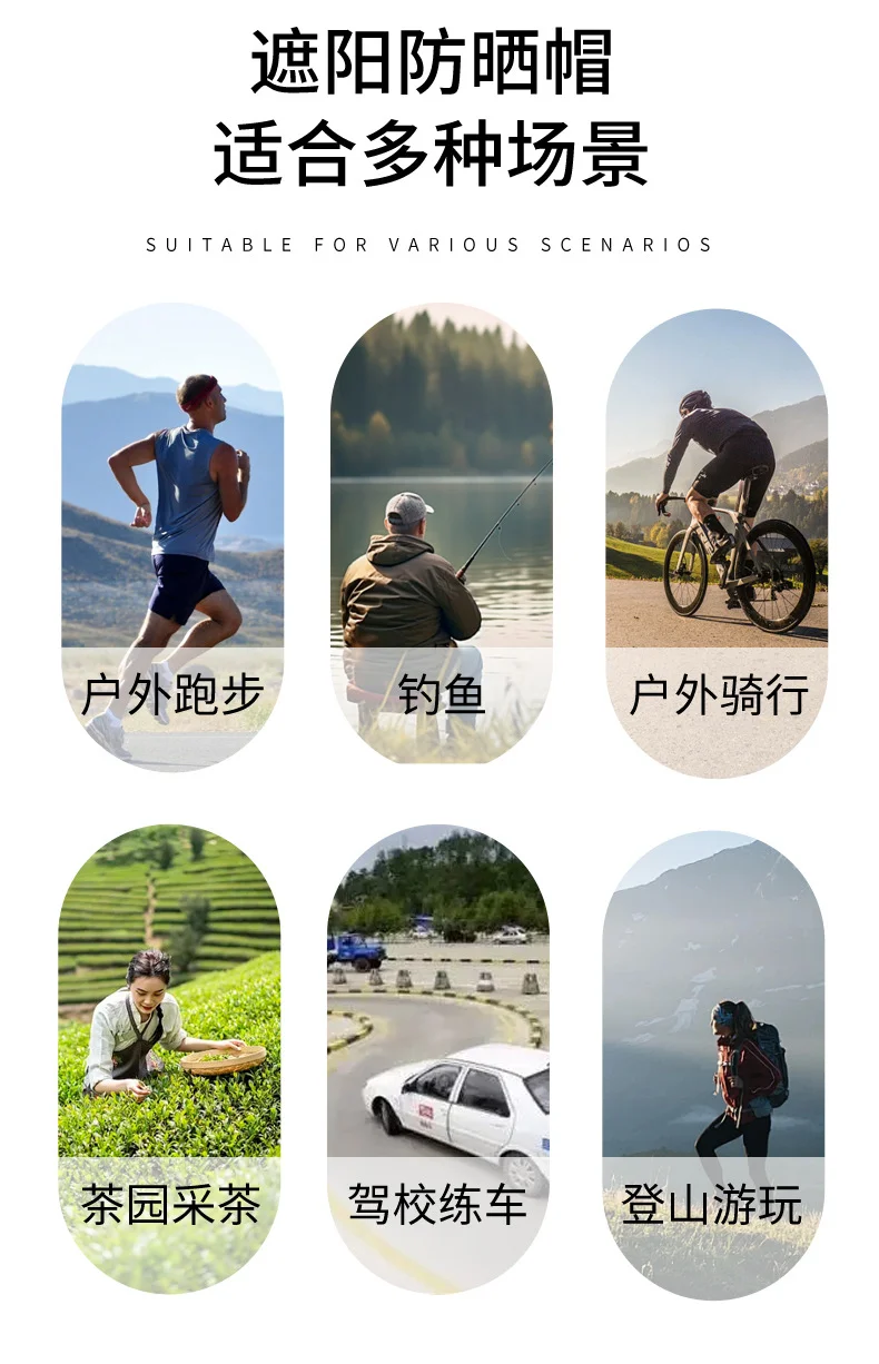04: Los métodos de uso versátiles realmente logran no solo los sombreros para el sol, sino también una amplia gama de aplicaciones, como pesca, ciclismo y otras actividades al aire libre.