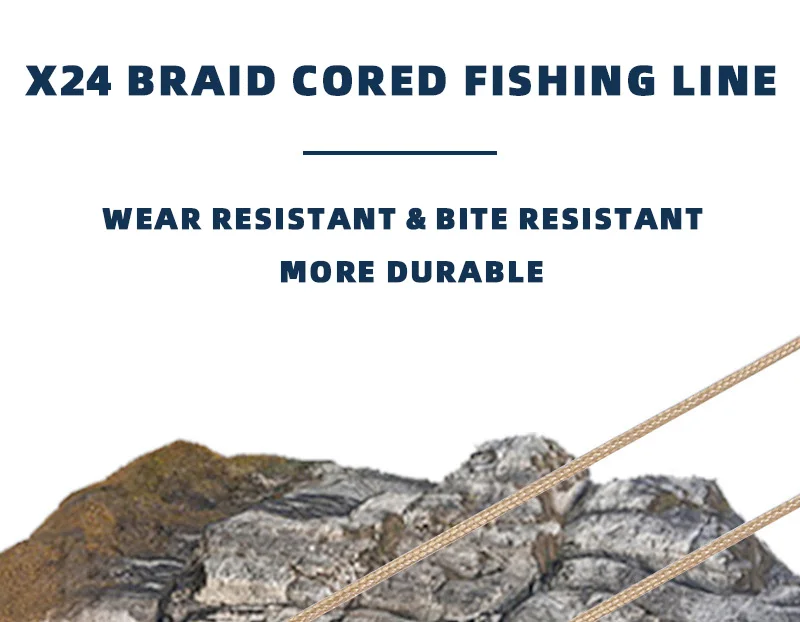 1: Línea X 24: el hilo de pescar adopta un tejido 16 + 8=24, más circular que las líneas de pesca de 4 tejidos y 8 tejidos y 9 tejidos, muy adecuado para lanzar a largo alcance y capturar peces grandes en el mar.