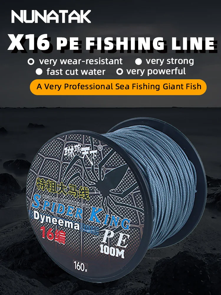2025 NUNATAK nueva llegada línea trenzada X16 100M 16 hebras línea de pesca trenzada Max Drag18KG-450KG suave multifilamento línea de PE suave lanzamiento profesional caza de larga distancia línea de peces grandes