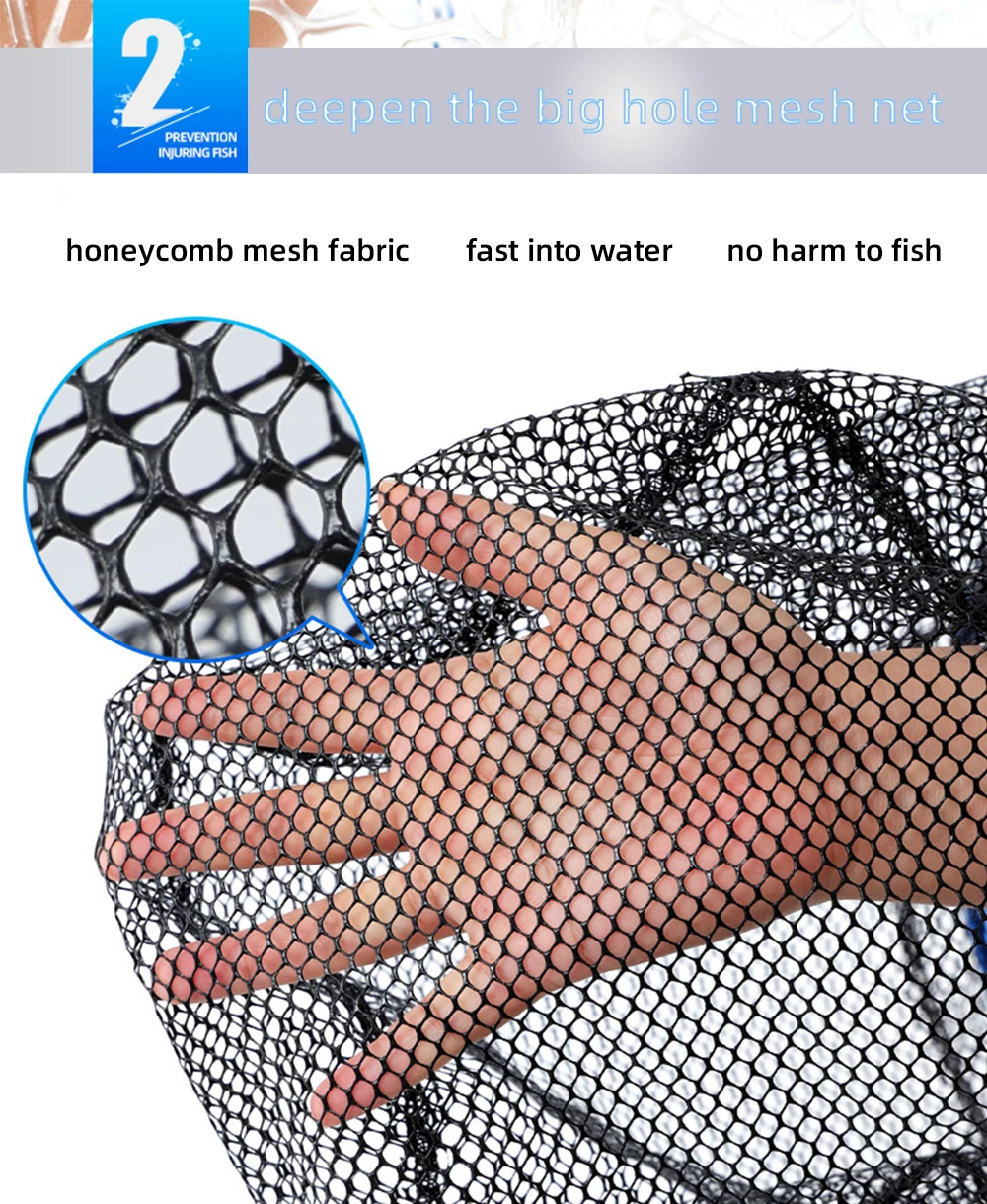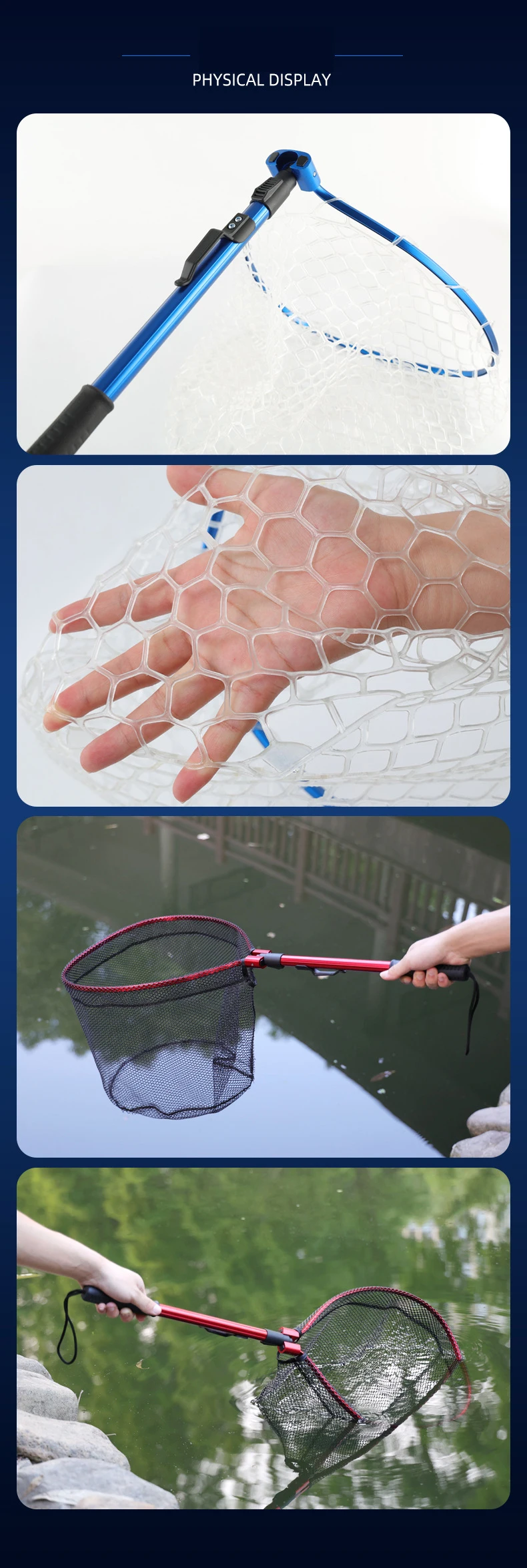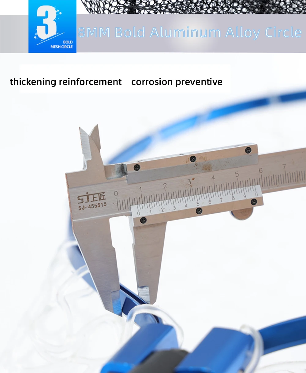 2: Tela de malla de pegamento de secado rápido + Material de aleación de aluminio + red de gel de sílice resistente al desgaste y a la corrosión hace que la red de pesca no solo dure mucho tiempo, pero tampoco emite ningún olor.