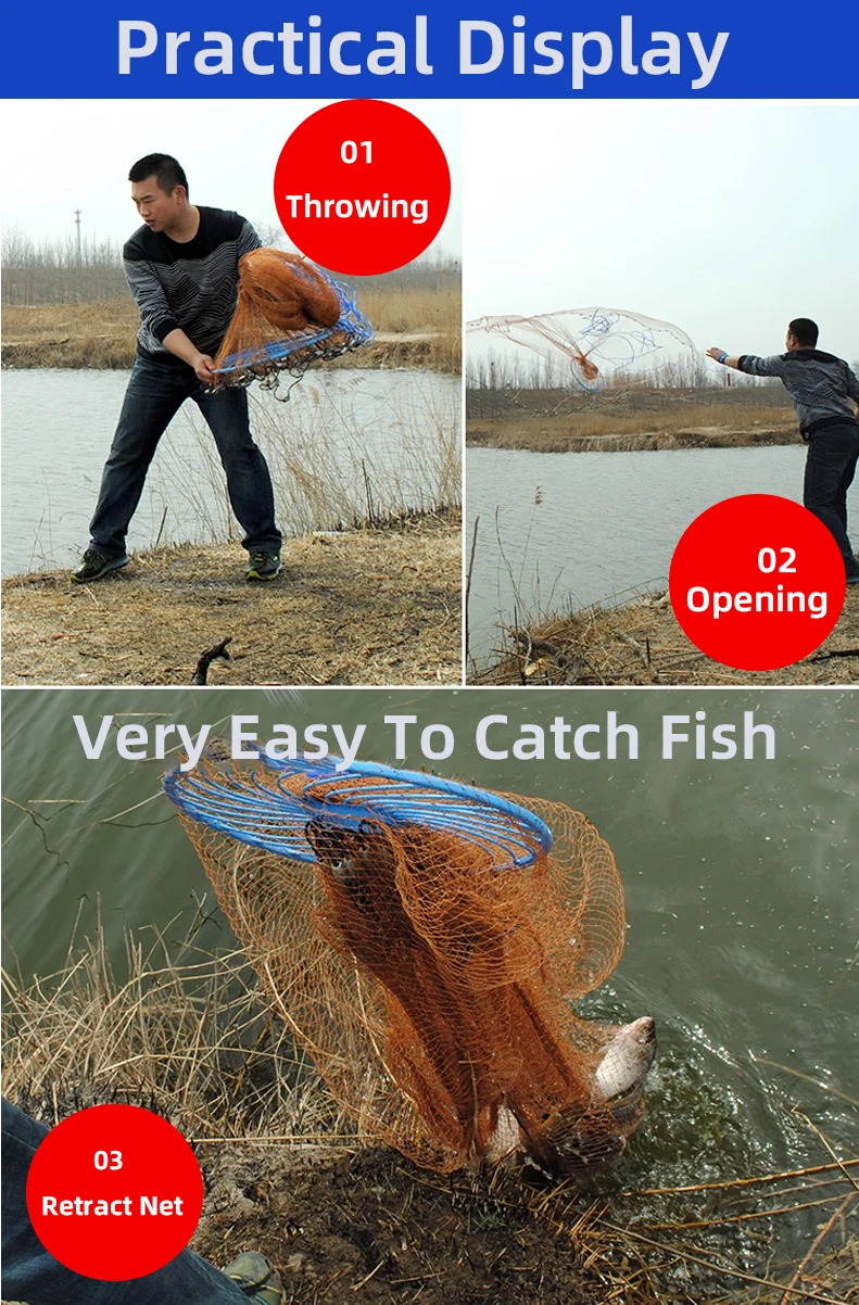 02: Diseño plegable y diseño de gran frisbee, no solo se puede desplegar completamente la red de pesca, sino que también es fácil de transportar y transportar, lo cual es muy conveniente y práctico.