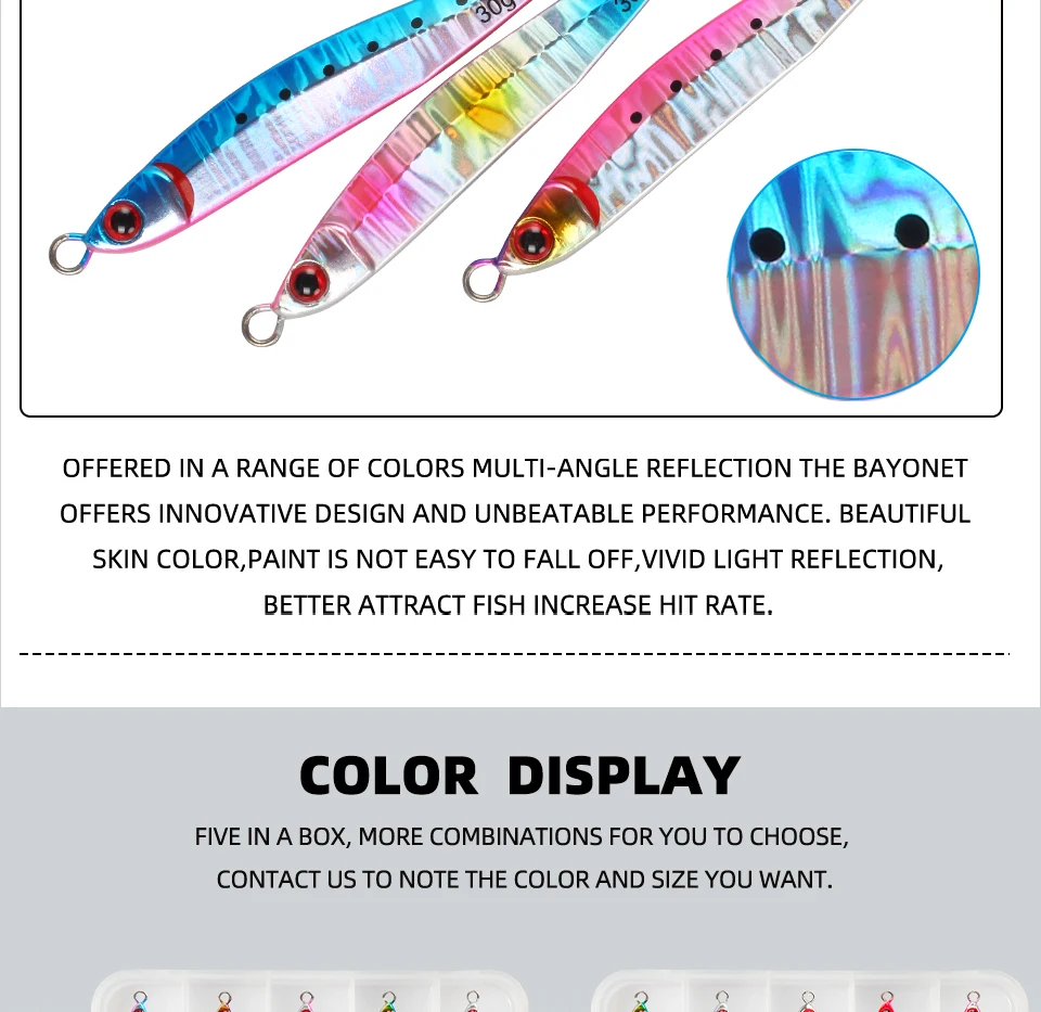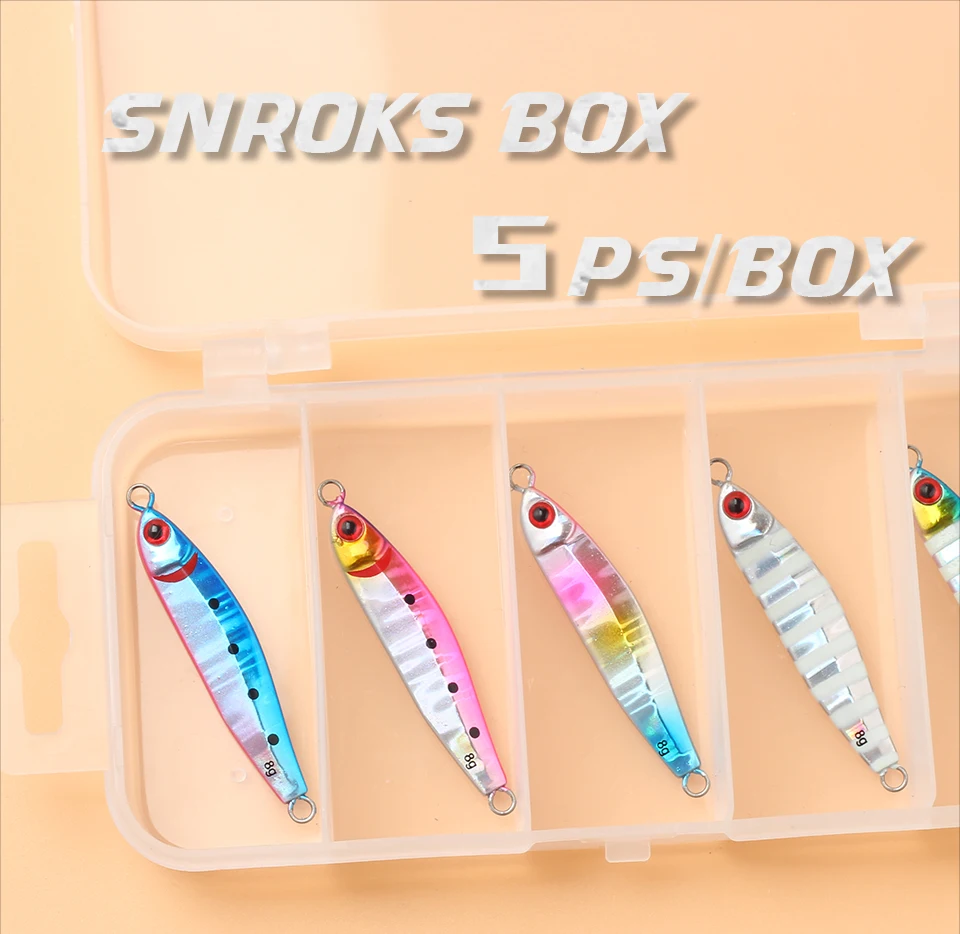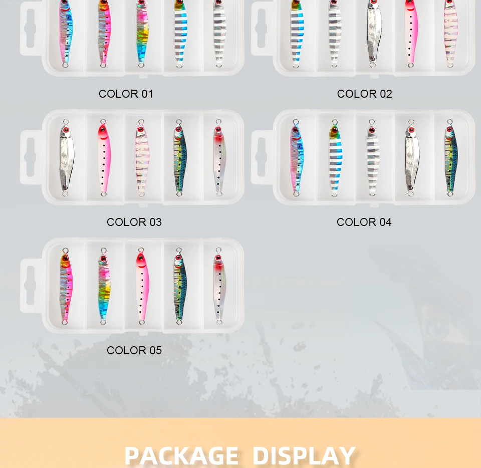 MAGIC WORKS caja de señuelo de plantilla de Metal cebos de perca 5g 8g 12g 18g 30g 5 unids/caja plantillas de mar cebo Artificial juego de pesca de obstáculos pez falso