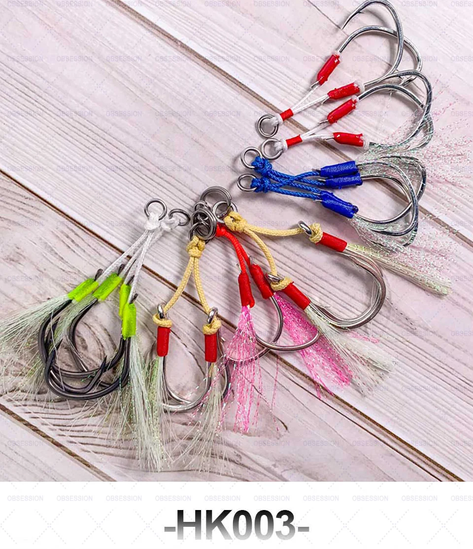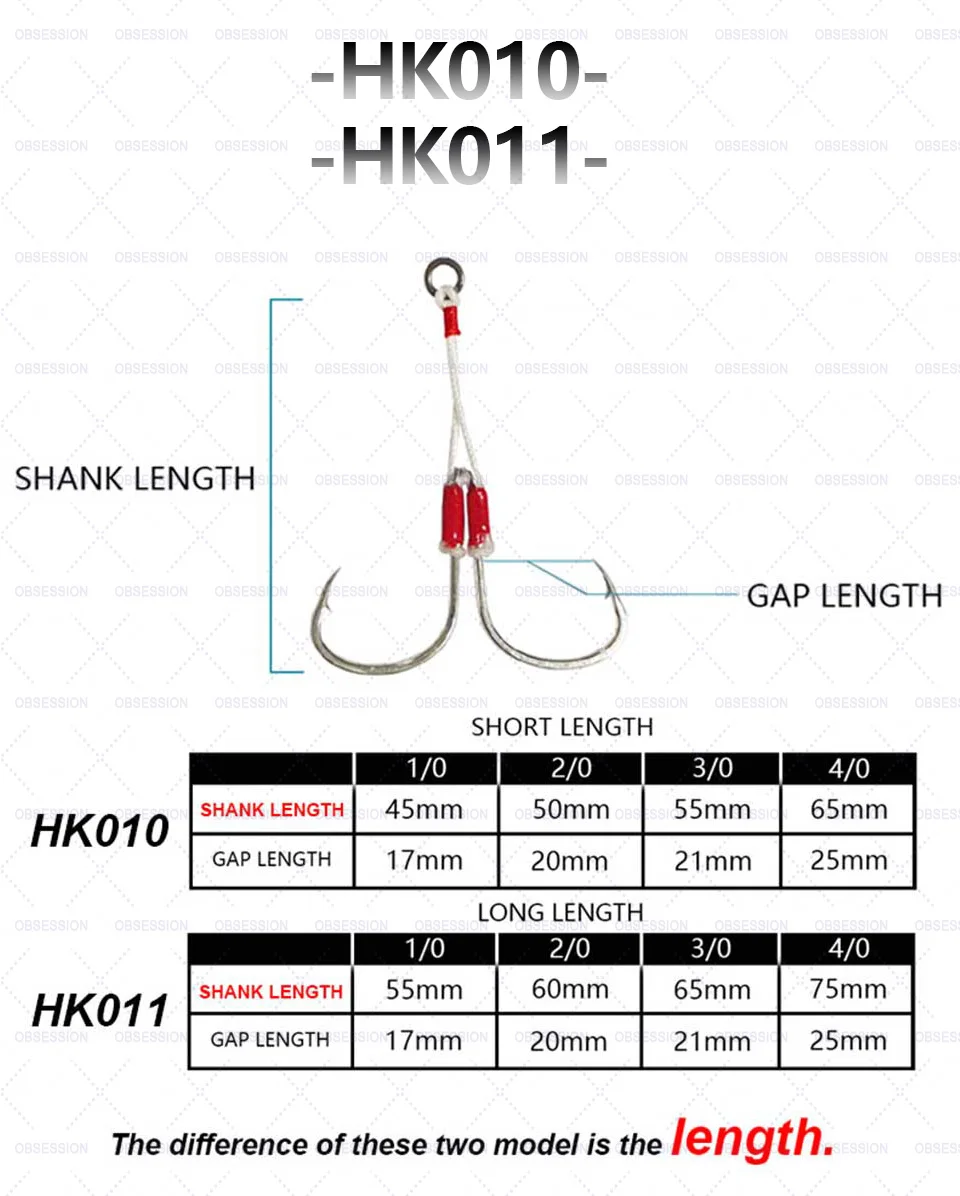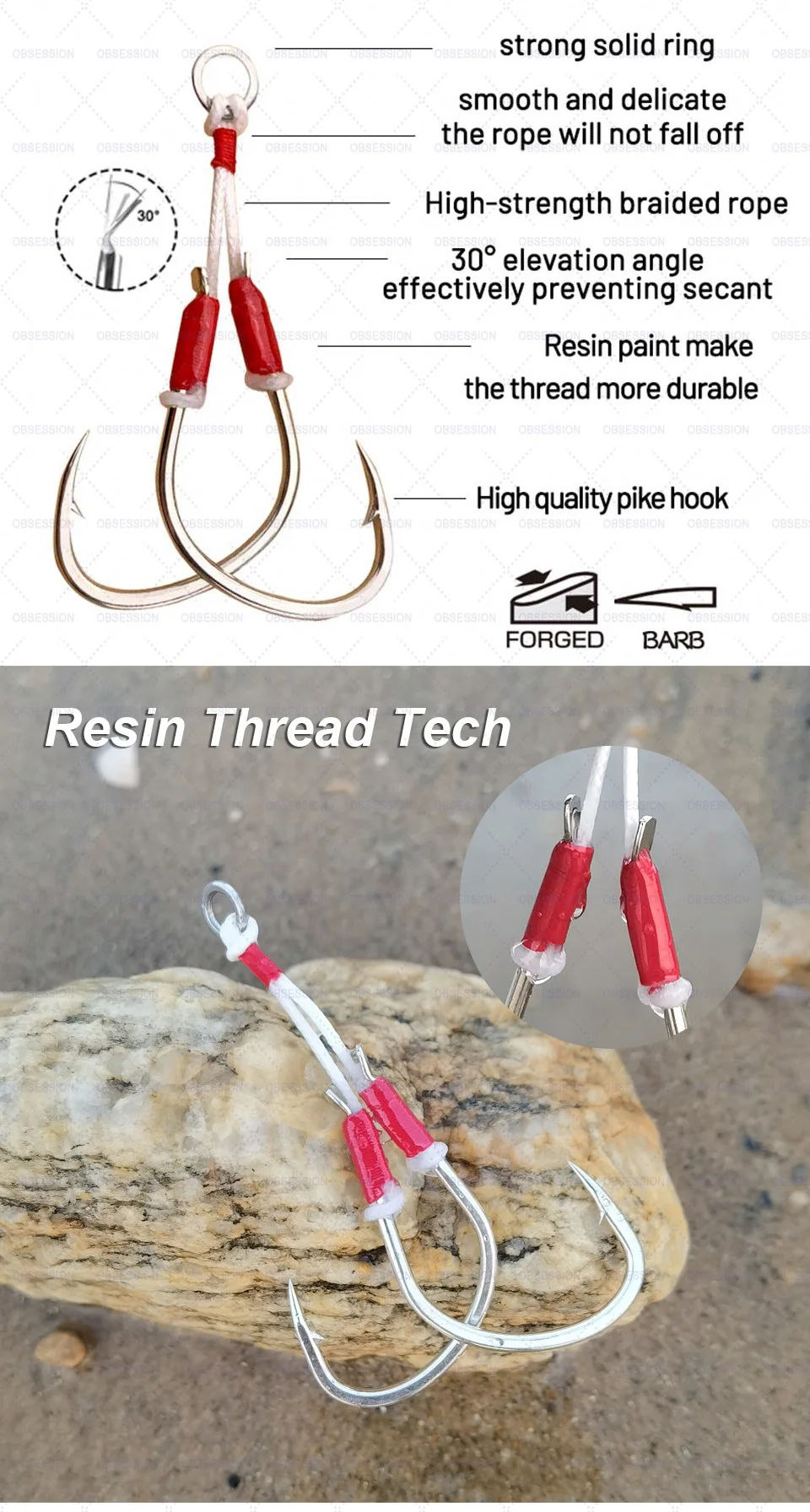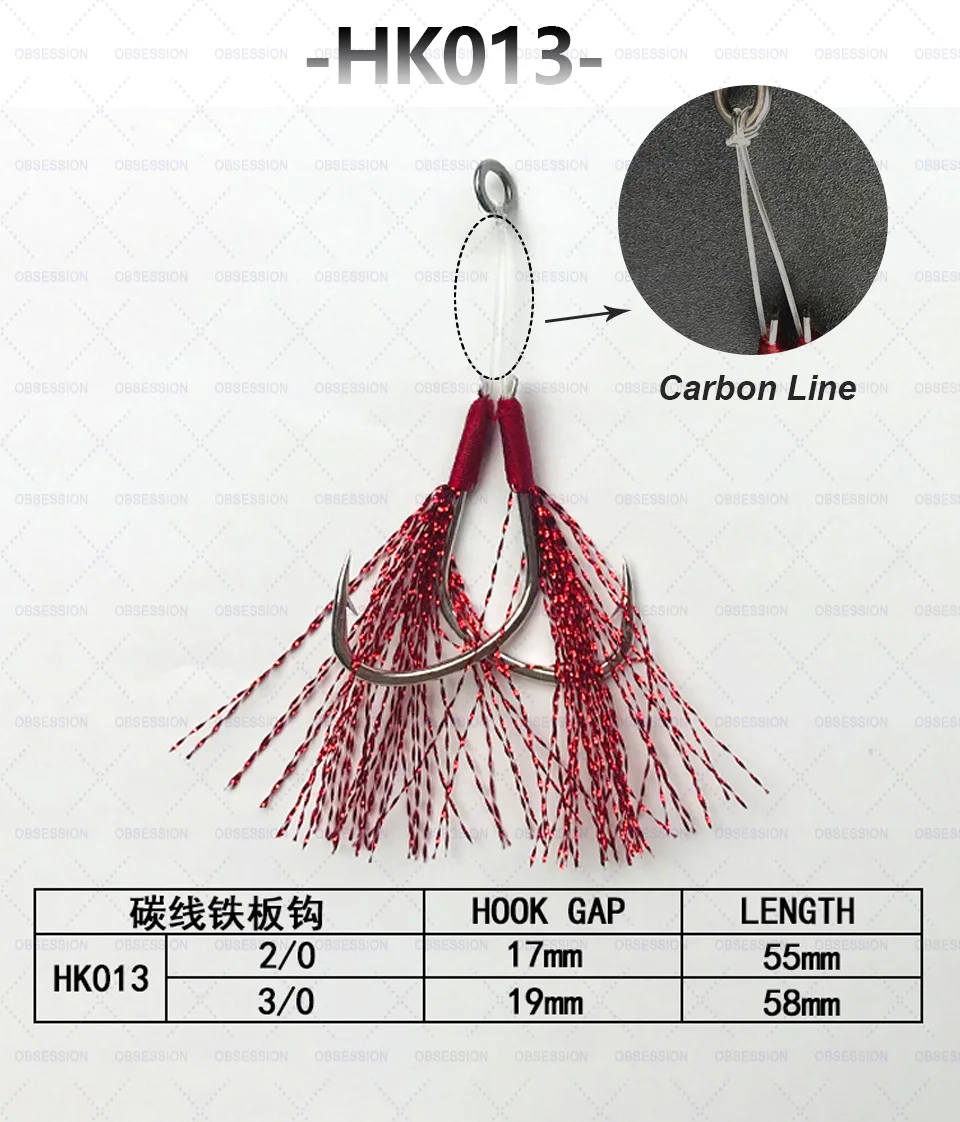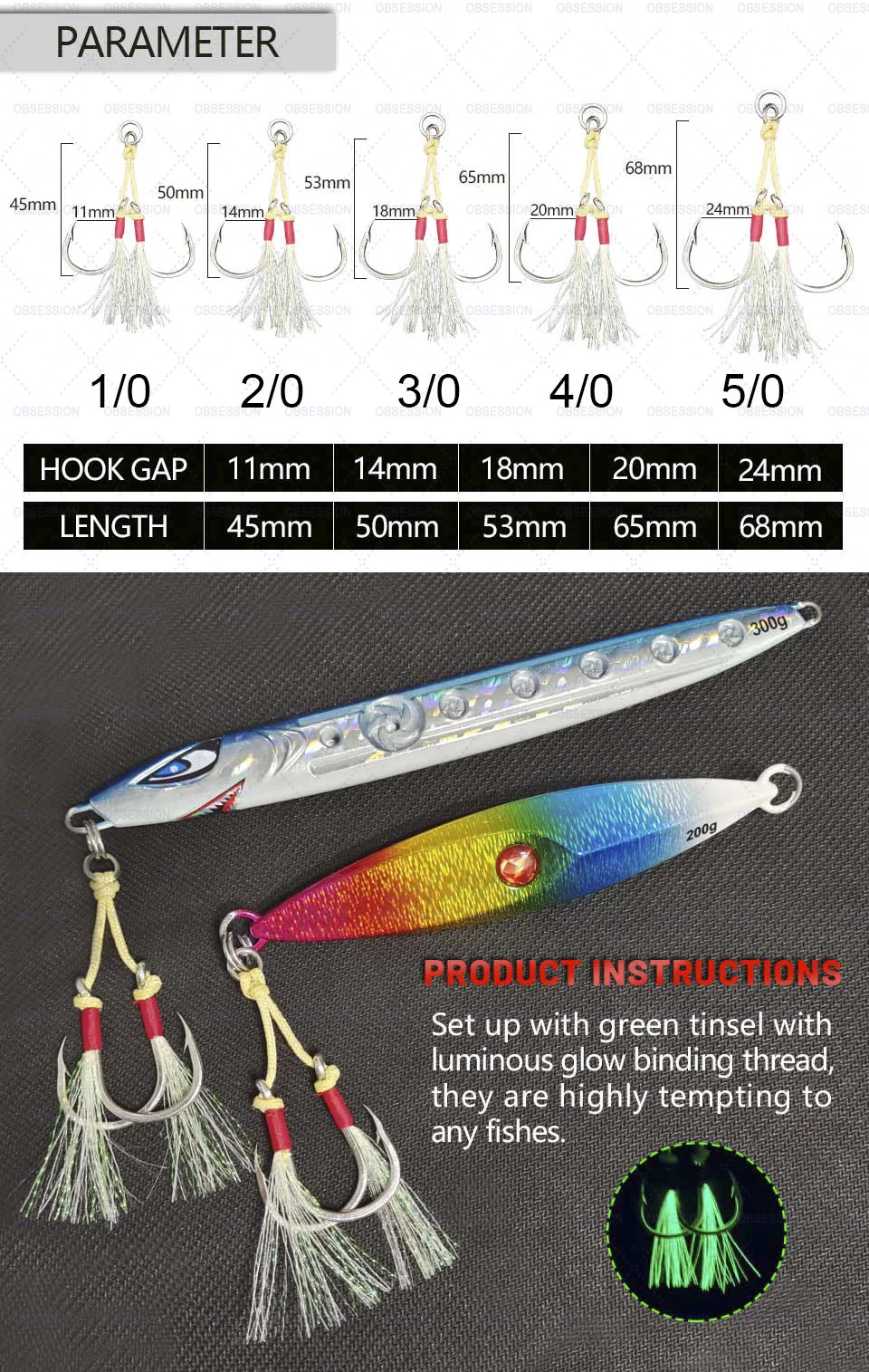 OBSESSION 2 unids/bolsa 1/0 2/0 3/0 ganchos dobles de asistencia doble anzuelos de pesca de hundimiento lento anzuelos de Lucio de agua salada de acero rico en carbono