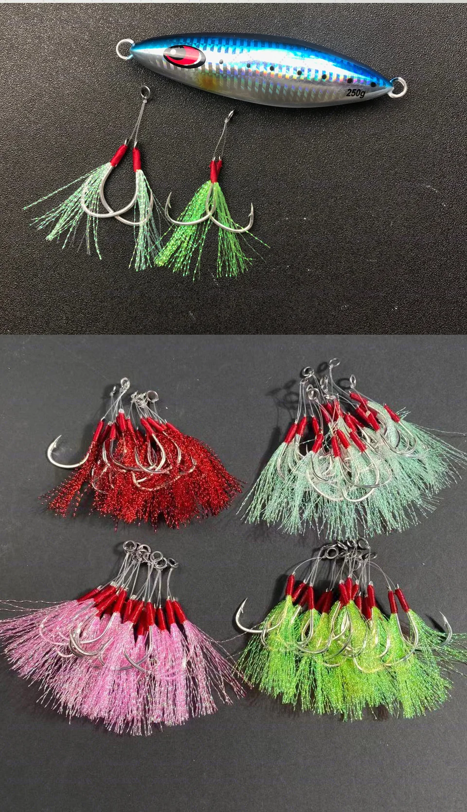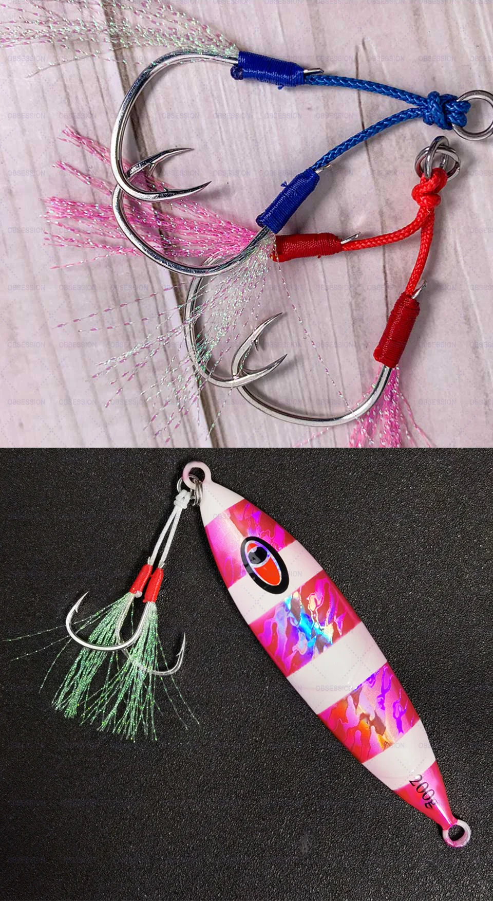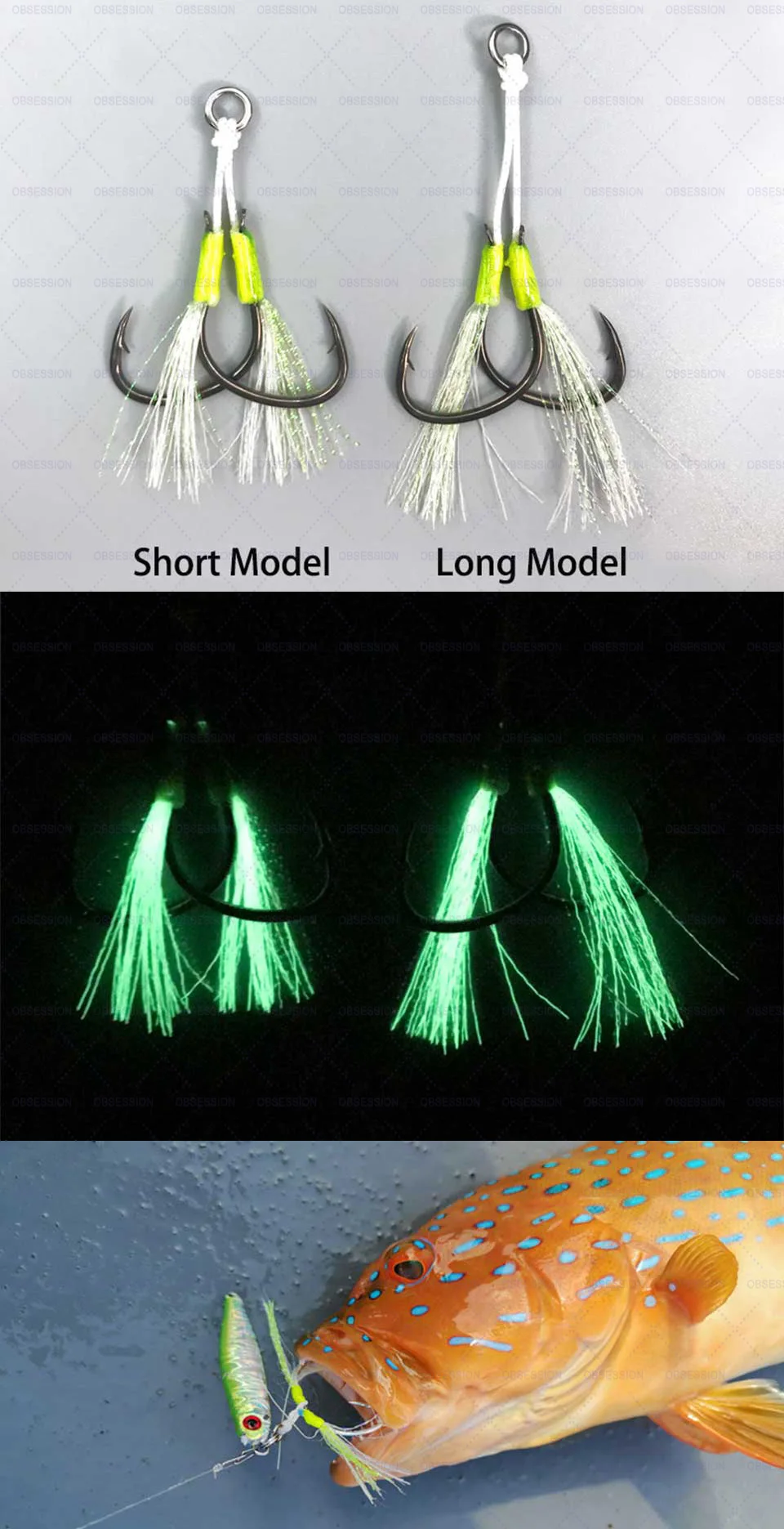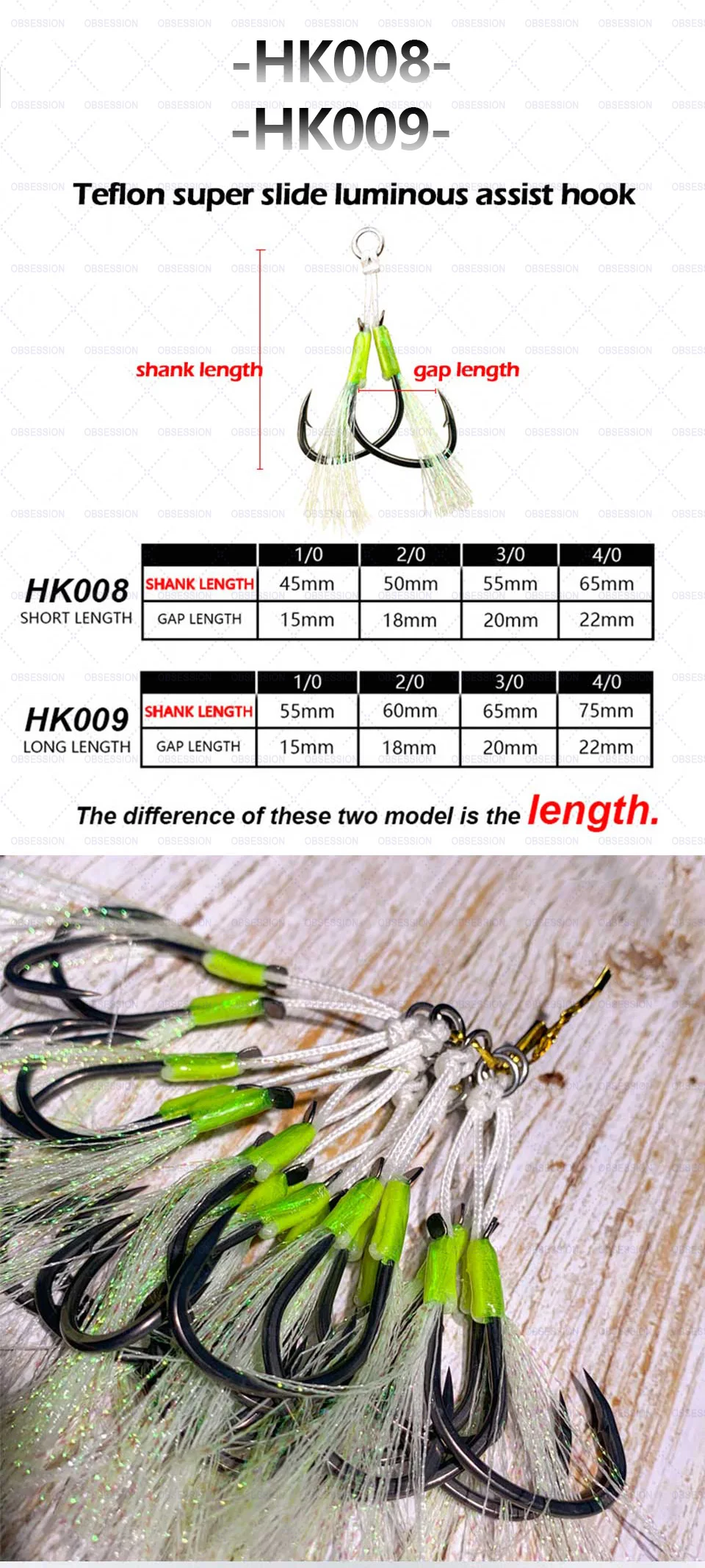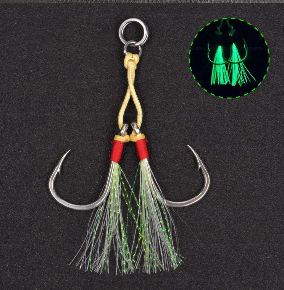 OBSESSION 2 unids/bolsa 1/0 2/0 3/0 ganchos dobles de asistencia doble anzuelos de pesca de hundimiento lento anzuelos de Lucio de agua salada de acero rico en carbono