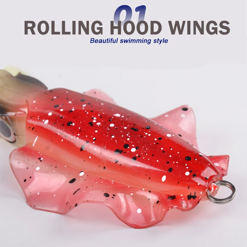 Las alas atraerán a los peces con la acción de giro y natación más realista, como un calamar real nadando.