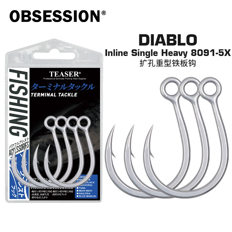OBSESSION 8091 5X DIABLO anzuelo de pesca Popper de agua salada 2/0 3/0 4/0 5/0 7/0 9/0 súper resistente al óxido anzuelo pesado único