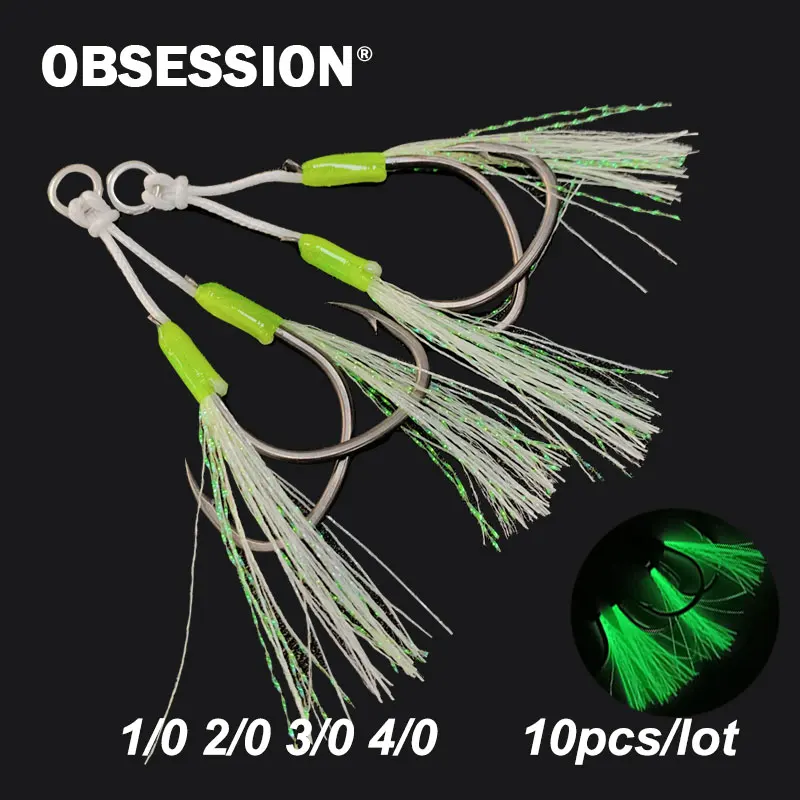 OBSESSION 1/0 2/0 3/0 4/0 pluma luminosa gancho suave Jigging lento acero de alto carbono mar-besugo equipo de ganchos de pesca accesorios