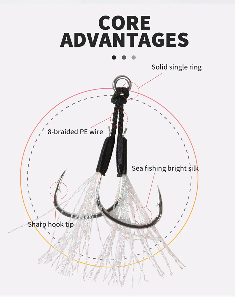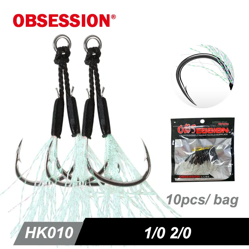 OBSESSION Kevlar Line 1/0 2/0 3/0 4/0 Gancho Jigging de Asistencia Única Hilo de acero de alto carbono Pluma Jig Head Ganchos luminosos Pesca