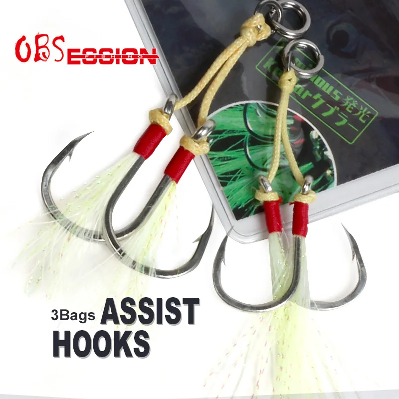 OBSESSION 1/0 2/0 3/0 4/0 5/0 Acero inoxidable Twin Assist Hooks Kevlar Line Jigging Hooks Saltwater Jig Señuelo Accesorios Peche