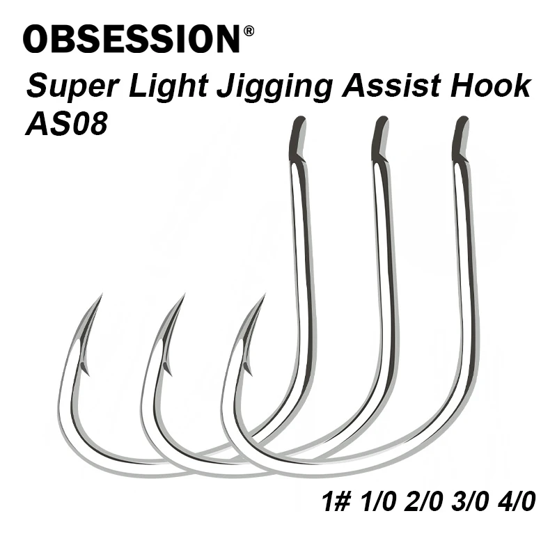 OBSESSION AS08 10 unids/bolsa PIKE agua salada acero al carbono anzuelos de pesca individuales 1# Gancho de asistencia de jigging súper ligero 1/0 2/0 3/0 4/0