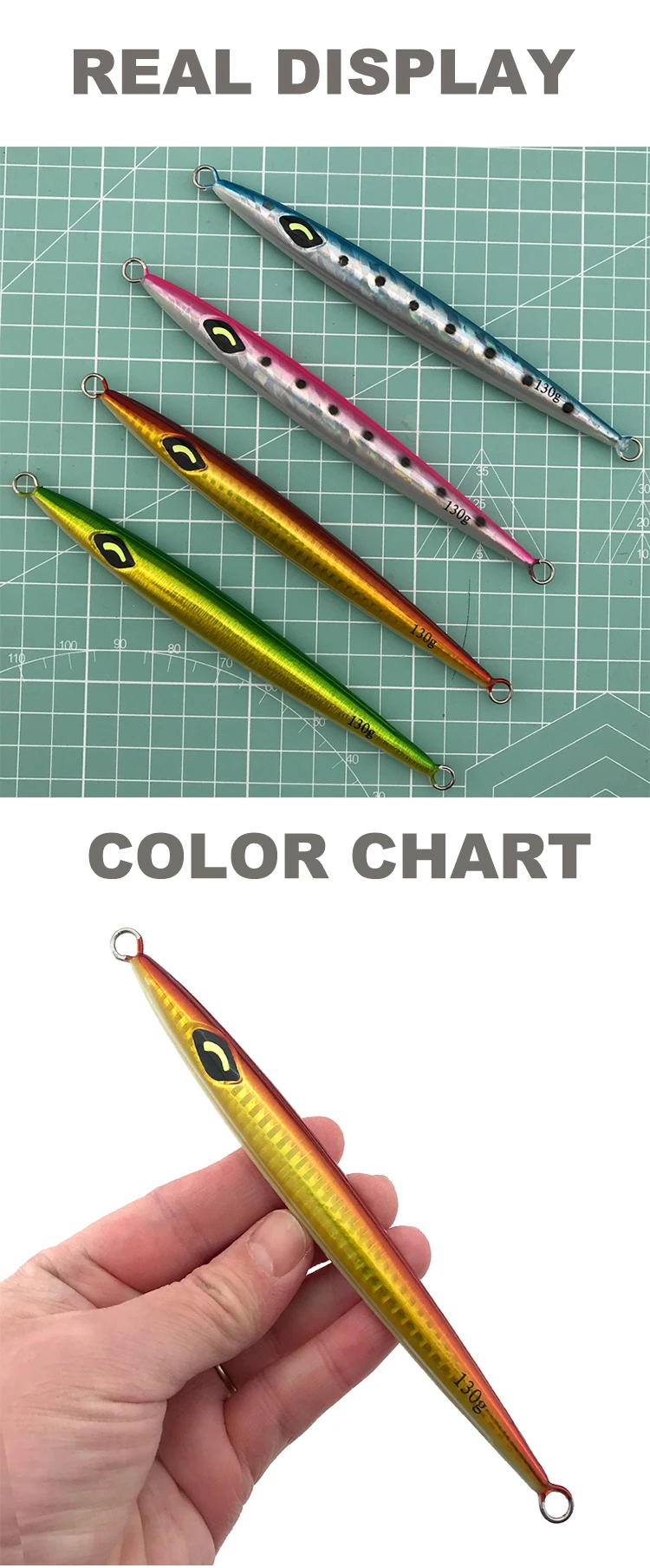 Longitud del señuelo Jig: 130 g 16 cm/150 g 16,5 cm/180 g 17 cm