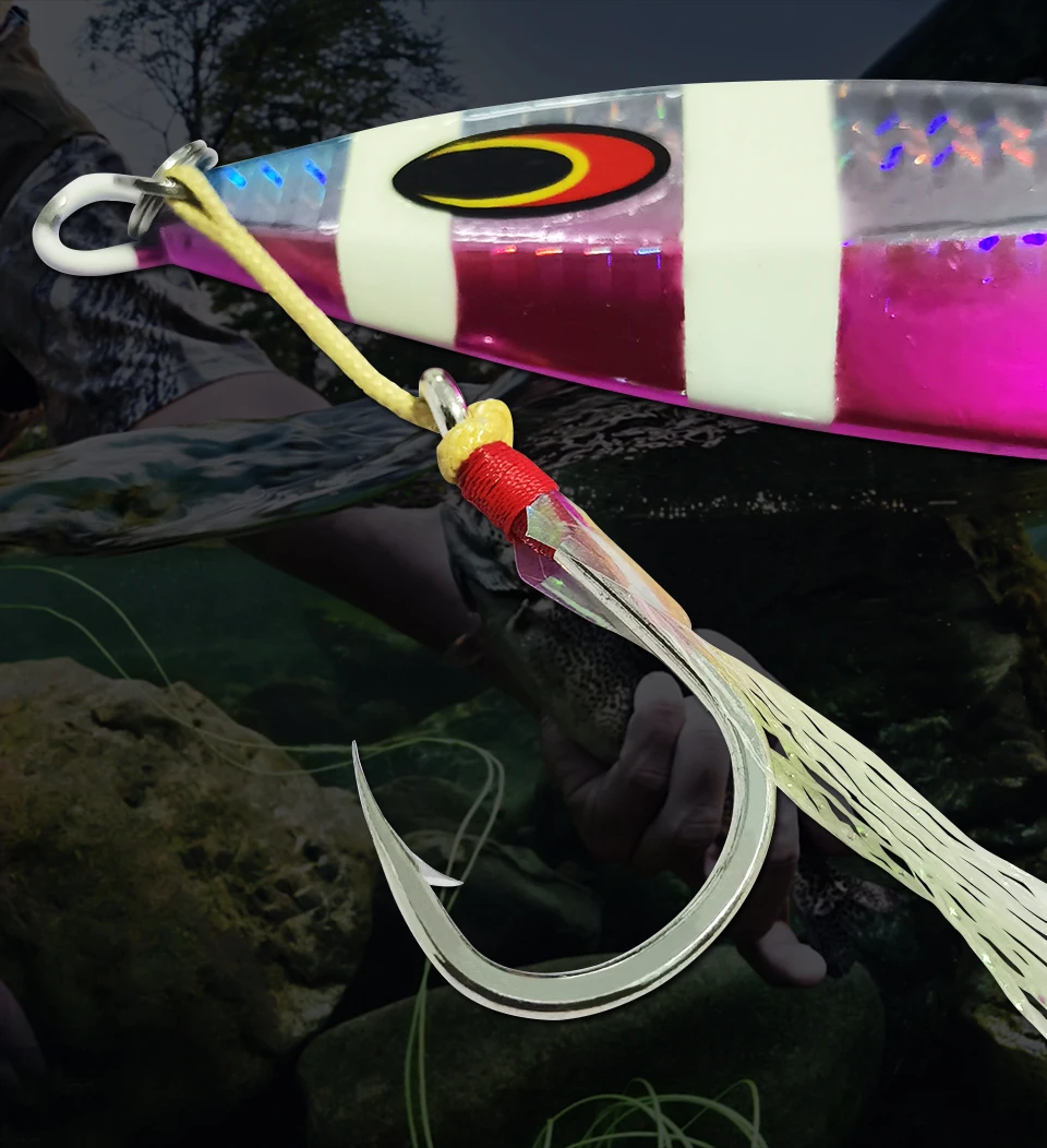 OBSESSION-Línea de Kevlar 1/0 2/0 3/0 4/0, gancho de Jigging de asistencia única, hilo de acero con alto contenido de carbono, pluma, cabeza de Jig, ganchos luminosos para Pesca