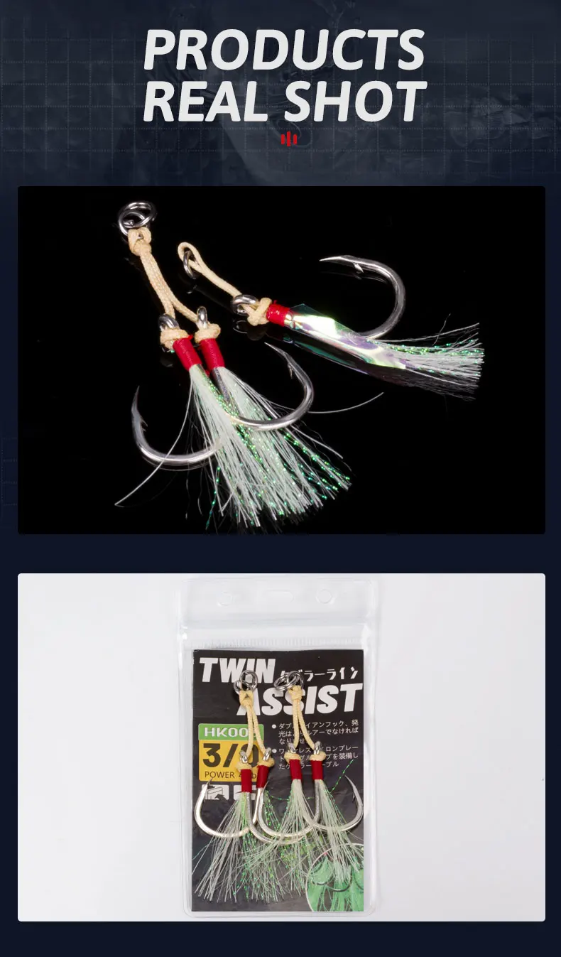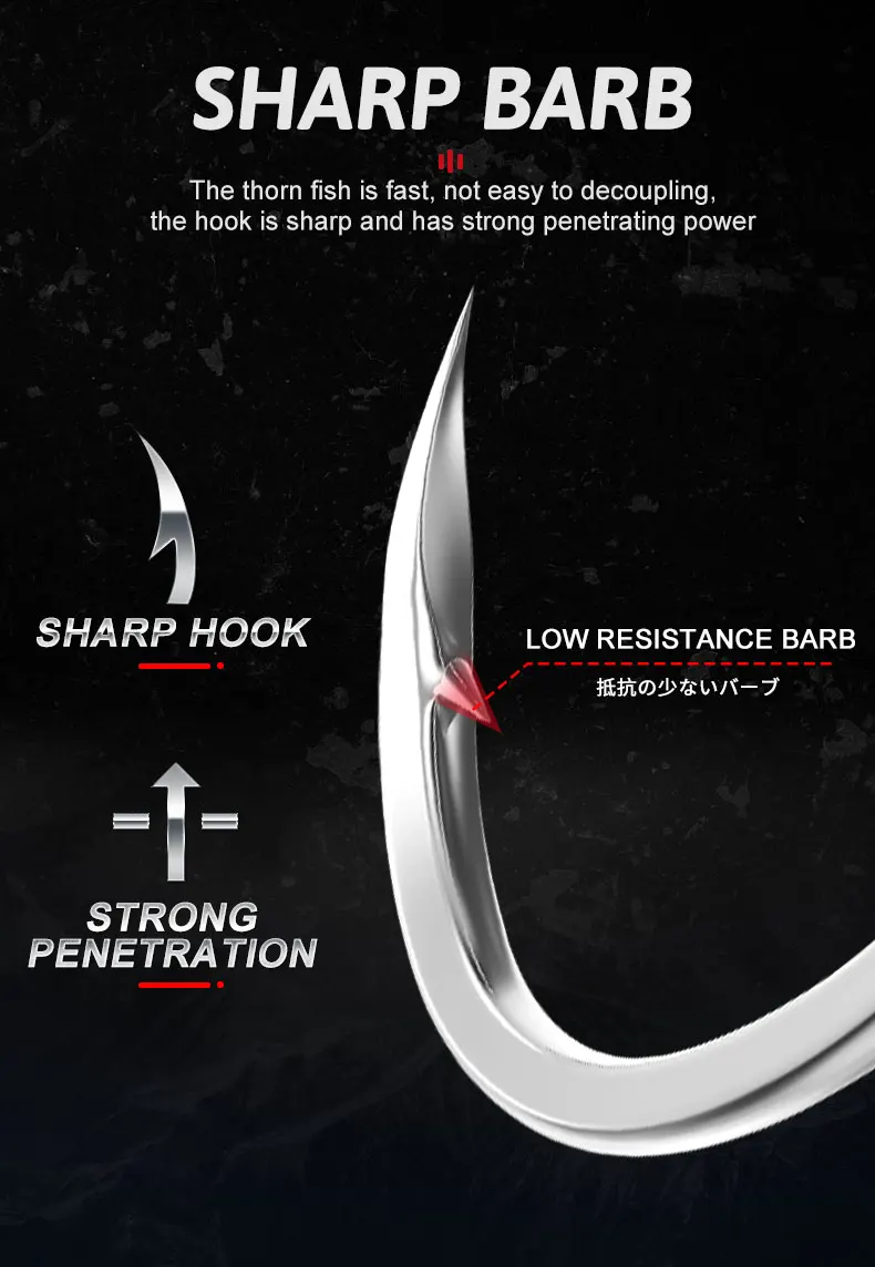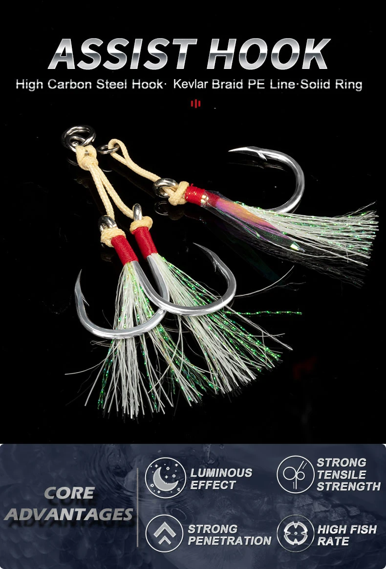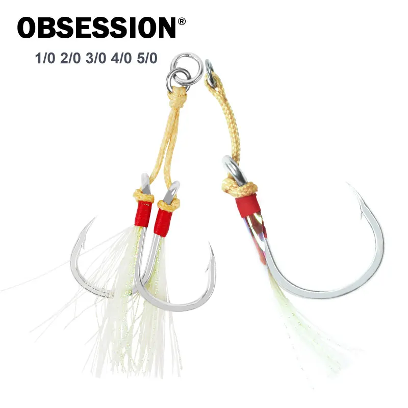 OBSESSION HK002/3 10 Uds. Anzuelos de pesca de mar de asistencia doble individual 1/0 2/0 3/0 4/0 5/0 SJ41 anzuelo de pesca de mar de asistencia lenta de acero inoxidable