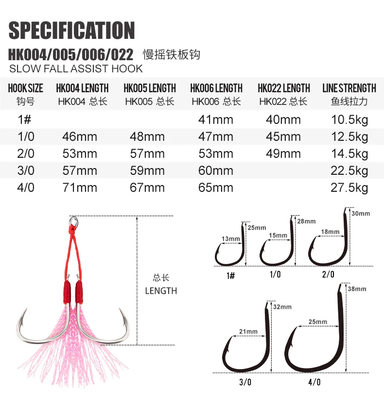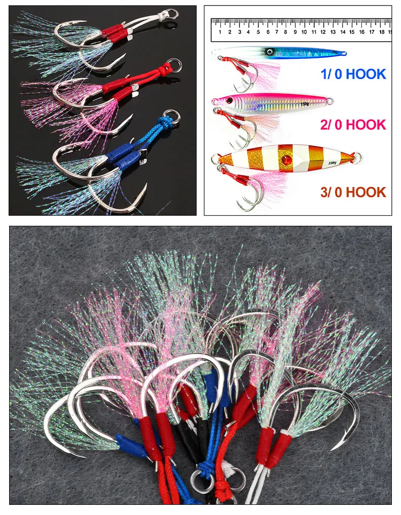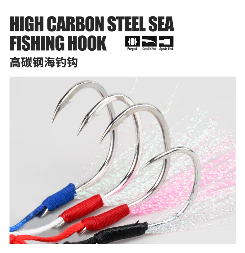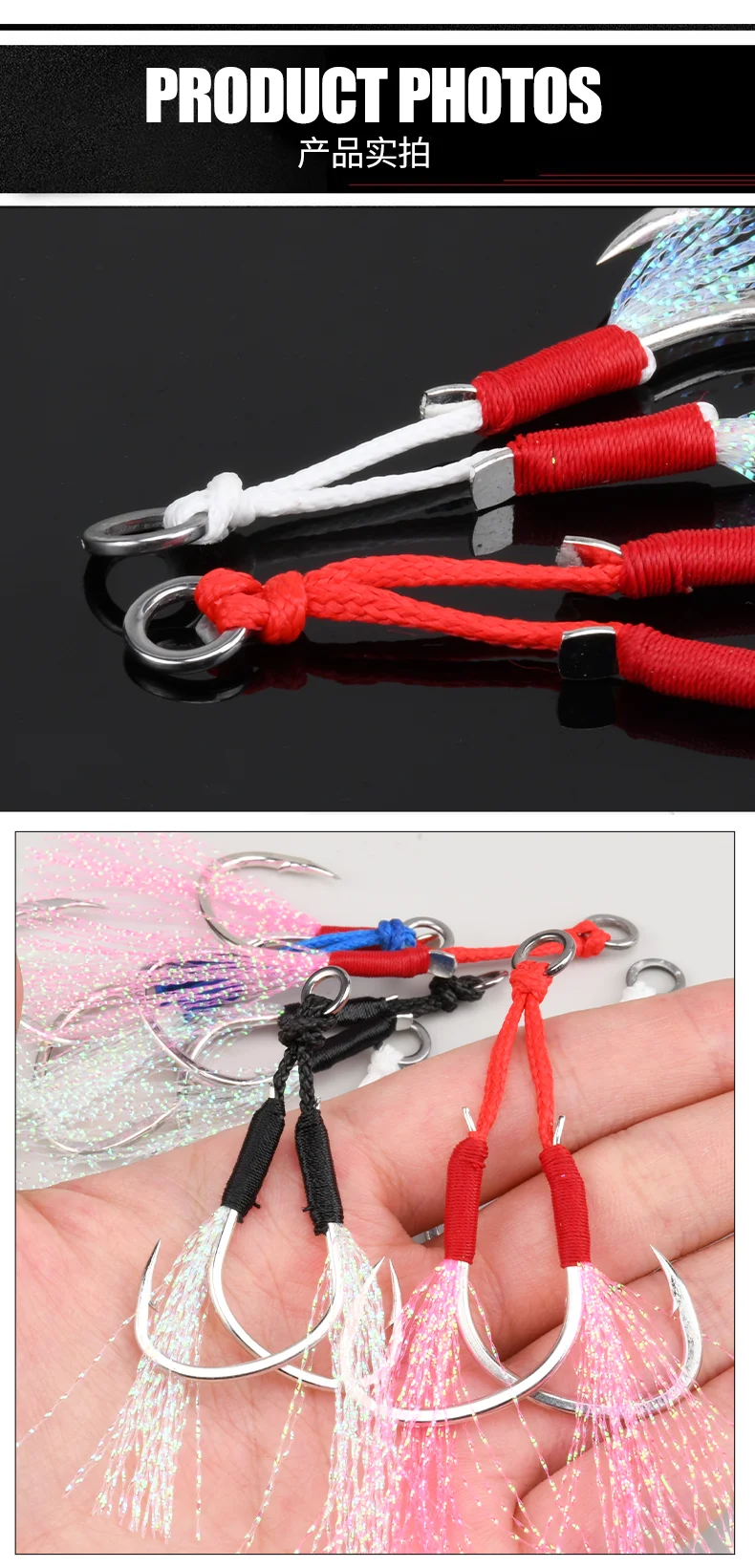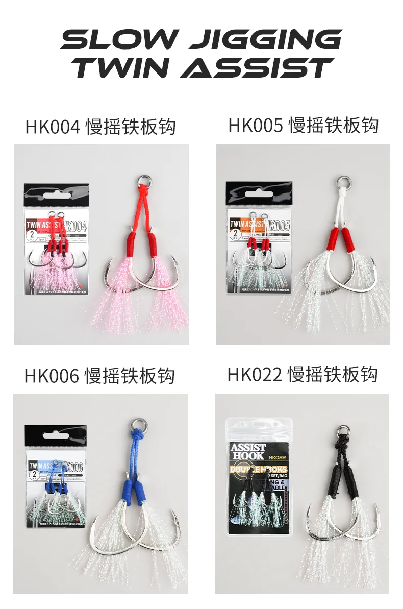 OBSESSION HK004/5/6/22 plumas de acero con alto contenido de carbono anzuelos de pesca de doble asistencia de Jigging lento 1/0 2/0 3/0 4/0 2 piezas anzuelo de pesca doble