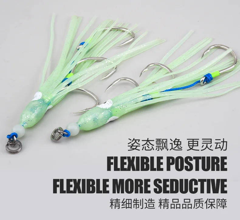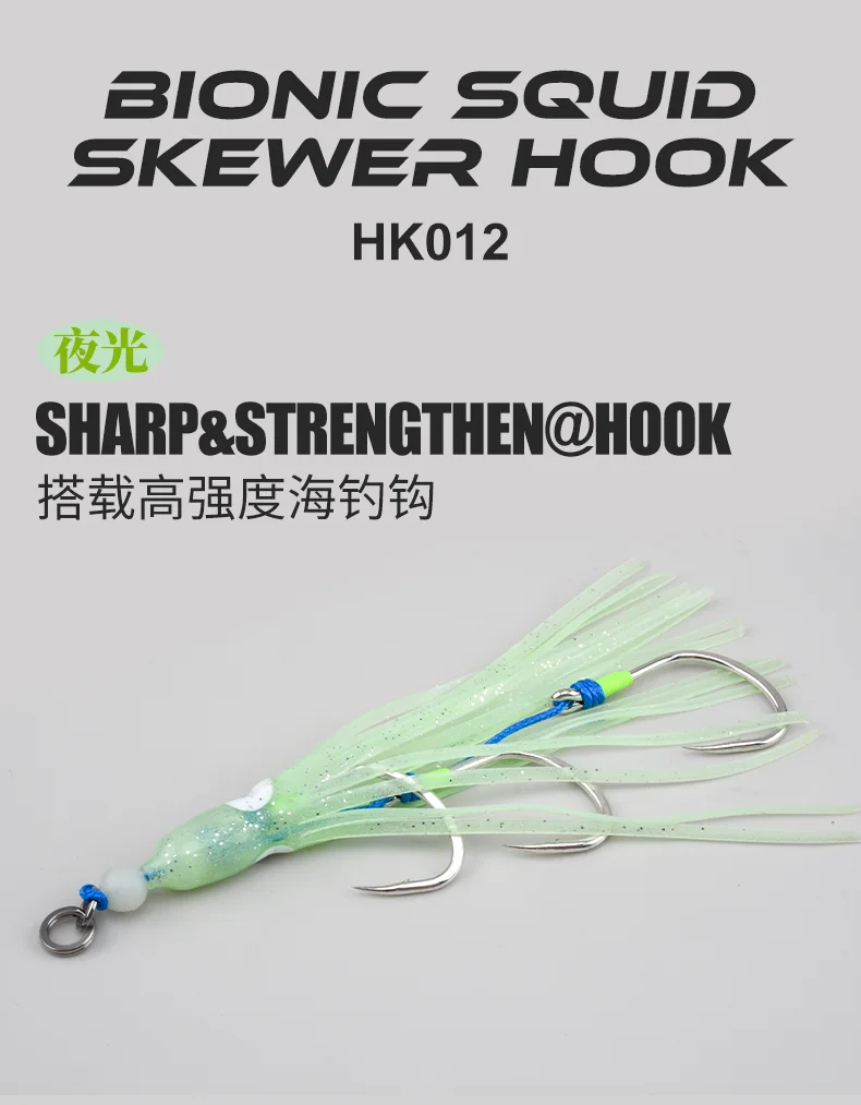OBSESSION HK012 2 unid/bolsa 2/0 3/0 4/0 anzuelo biónico para brocheta de calamar agua salada triple pesca anzuelo afilado brillo Metal ayuda ganchos de pulpo