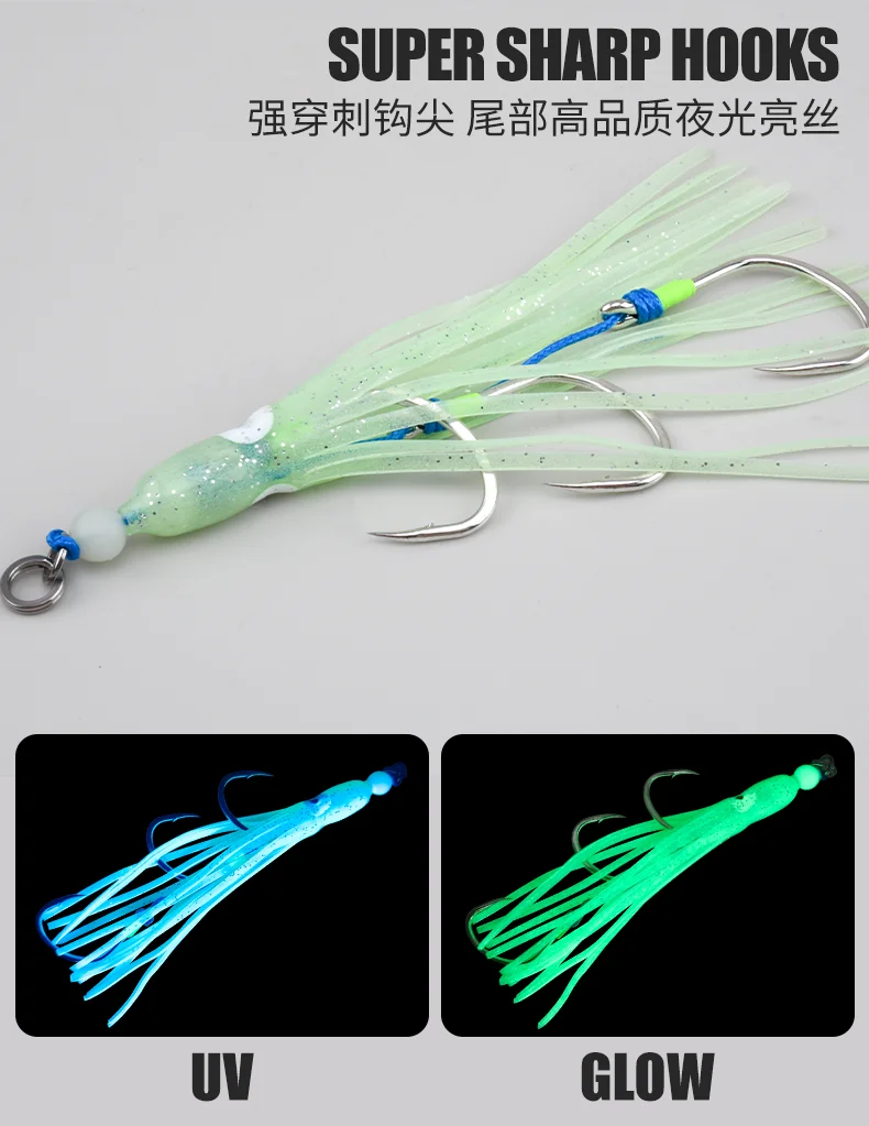 Anzuelos de asistencia muy sólidos para jigs largos, ningún pez puede escapar de estos anzuelos. Son muy útiles para mis jornadas de jigging.