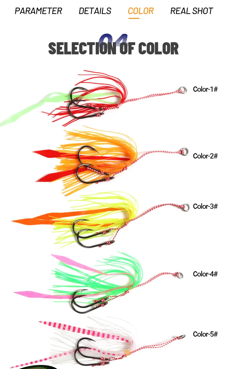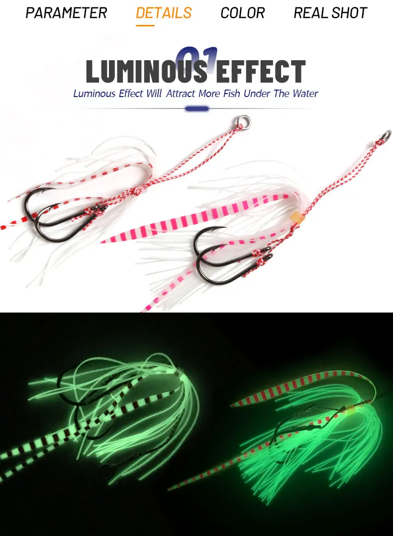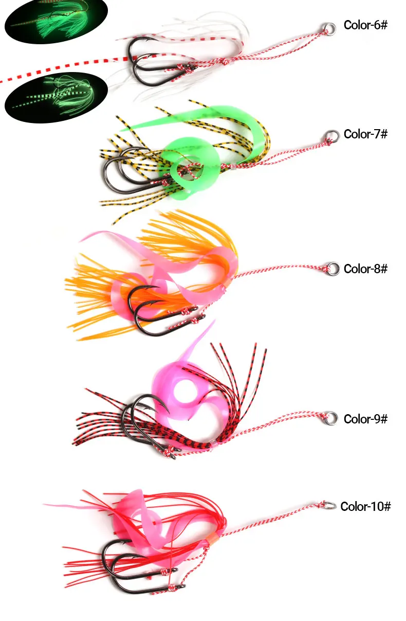 OBSESSION HK017 10 unids/bolsa gancho Chinu luminoso de agua salada falda de goma suave Inchiku Jigging ayuda gancho pesca en el mar ganchos dobles