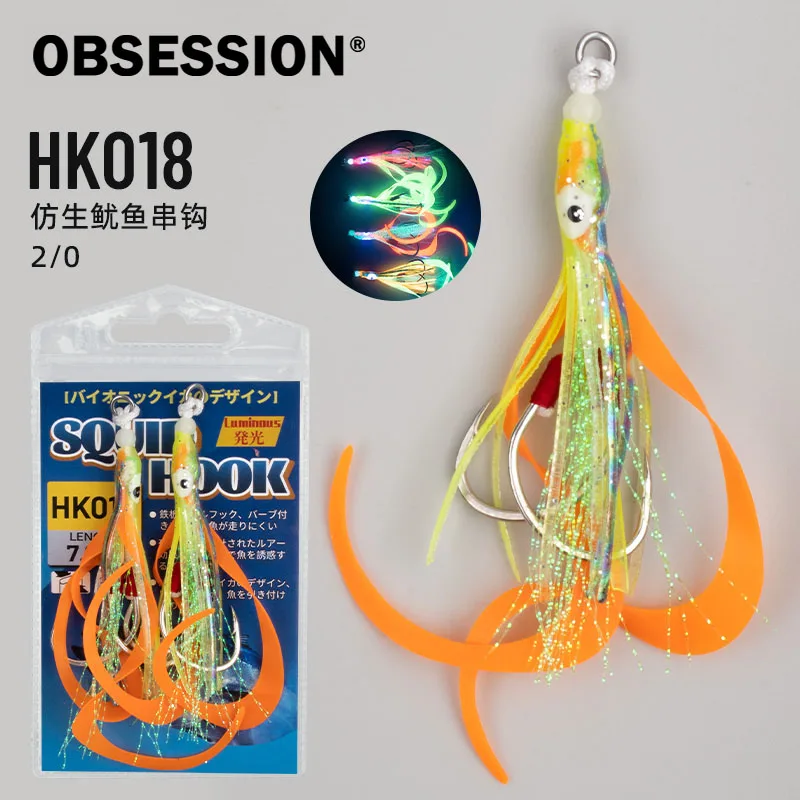 OBSESSION HK018-anzuelo de Pesca de Mar, 10 pares por bolsa, accesorios de Jigging lento, falda de calamar suave, acero de alto carbono, plantilla de Metal, anzuelo de asistencia