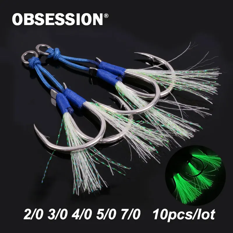 OBSESSION 1/0 2/0 3/0 4/0 Pluma luminosa Gancho suave Jigging lento Acero de alto carbono Anzuelos de pesca de besugo Kit Accesorios