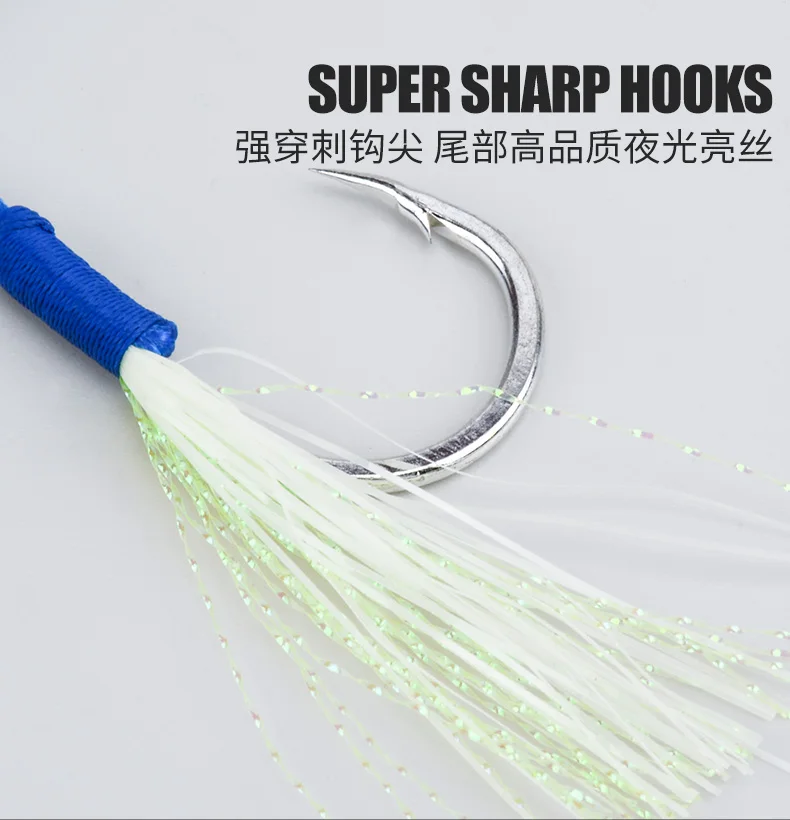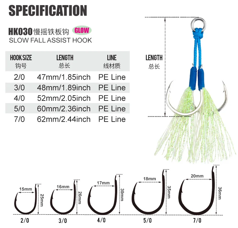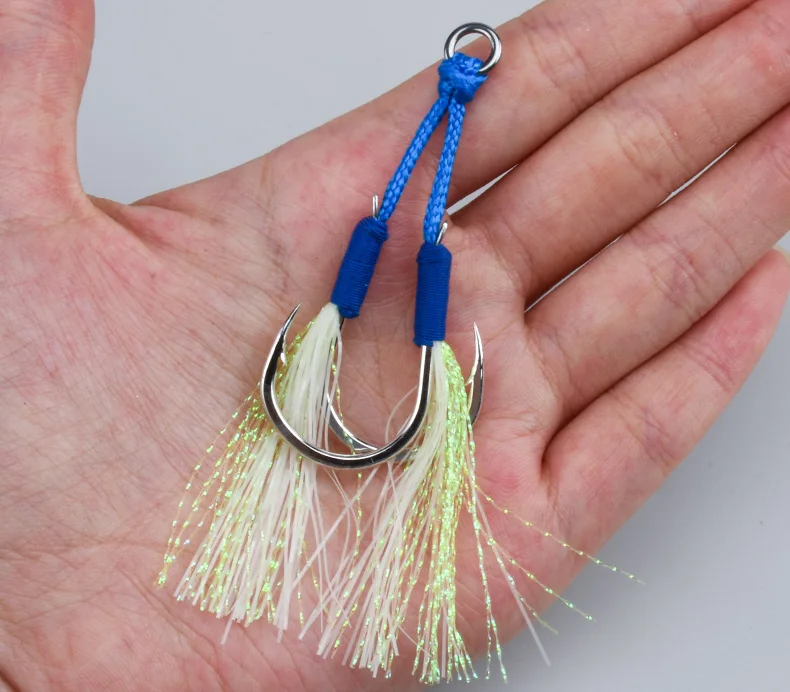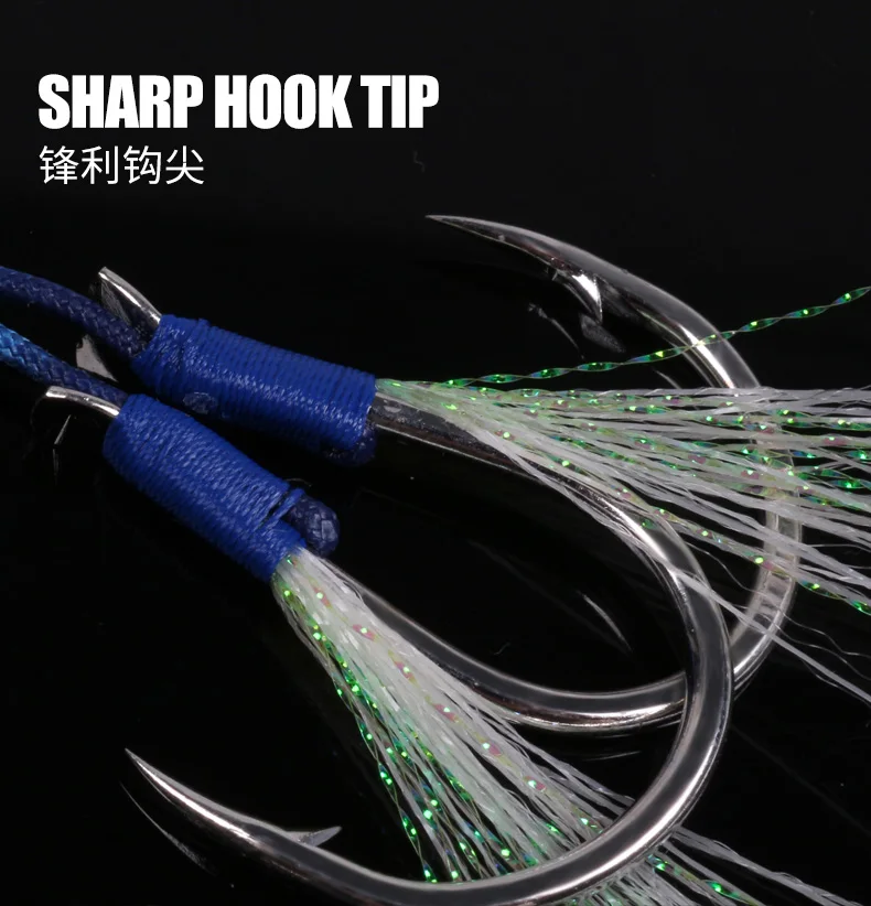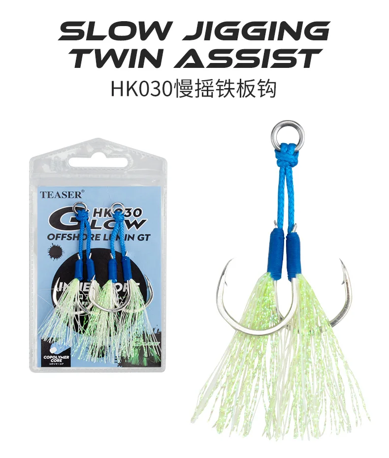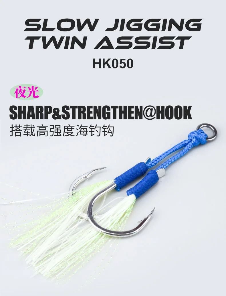 OBSESSION HK030 10 unids/lote de anzuelos de Jigging de acero con alto contenido de carbono, anzuelo de pesca de línea PE, vástago de púas que brilla en agua salada, anzuelo de asistencia para plantilla de Pesca