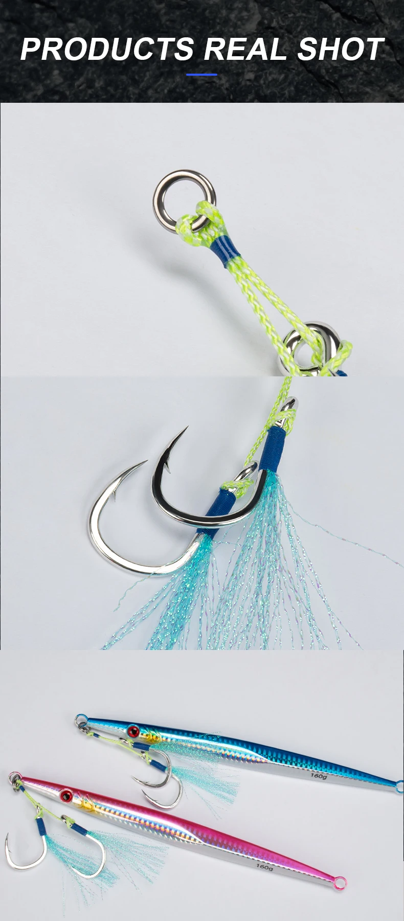OBSESSION HK035 2 unids/bolsa anzuelo de pesca doble de acero rico en carbono agua salada UV anzuelos de asistencia de jigging lento anzuelo de pesca de plumas brillantes