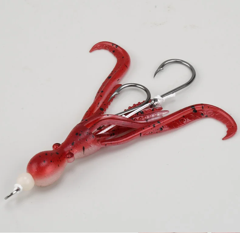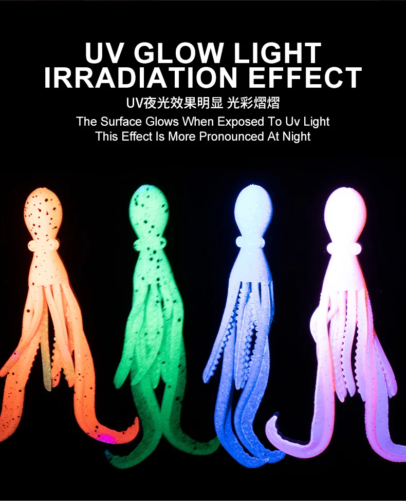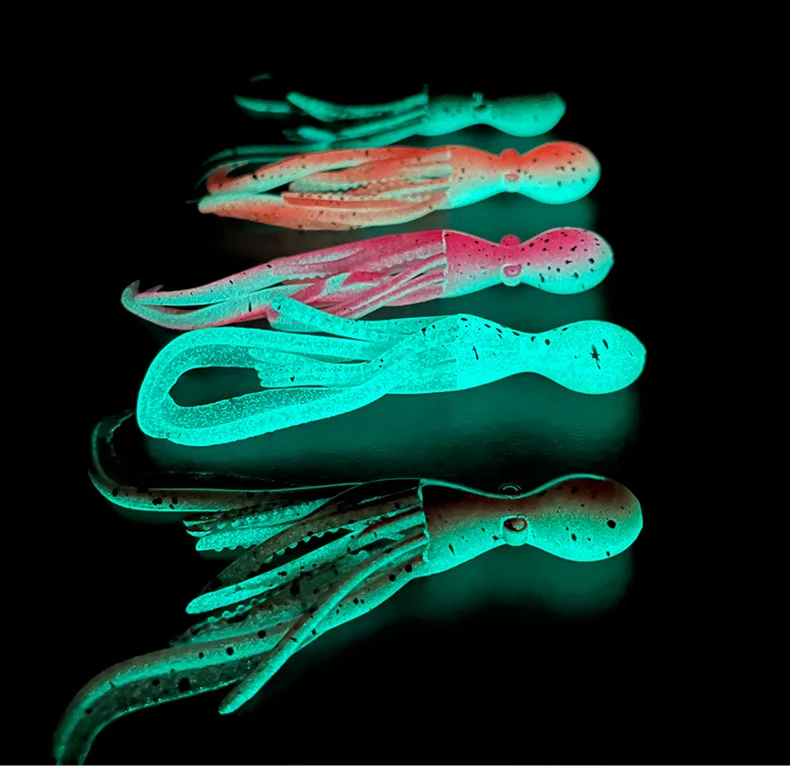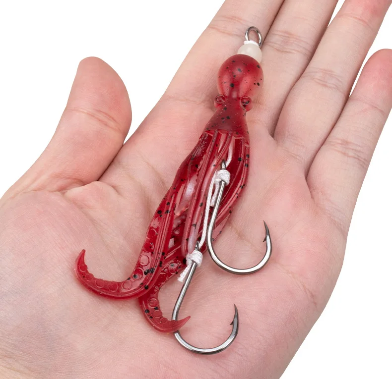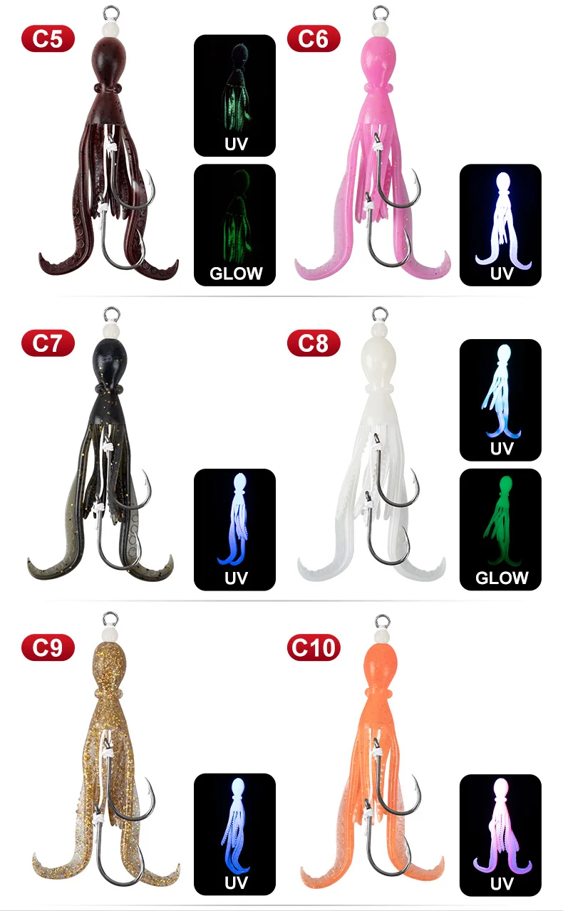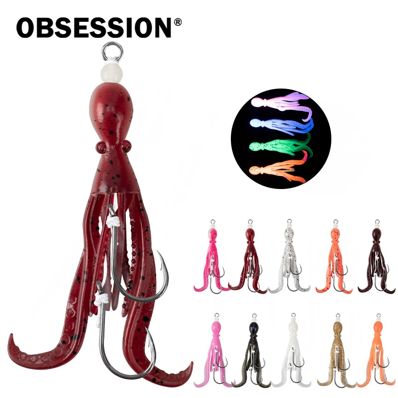 OBSESSION HK037 5g/9.5cm TPE anzuelo de pesca de pulpo biónico 2 unids/bolsa agua salada brillo UV ganchos de asistencia de calamar flexibles suaves