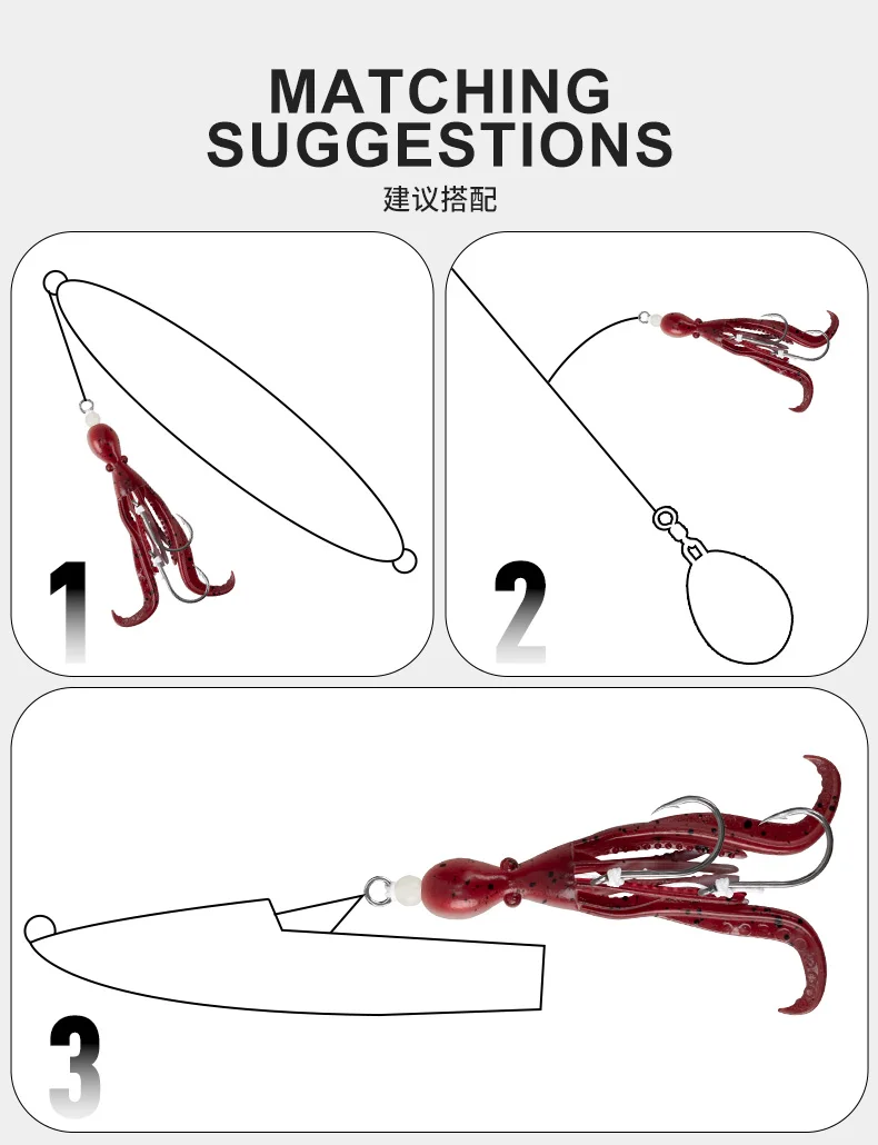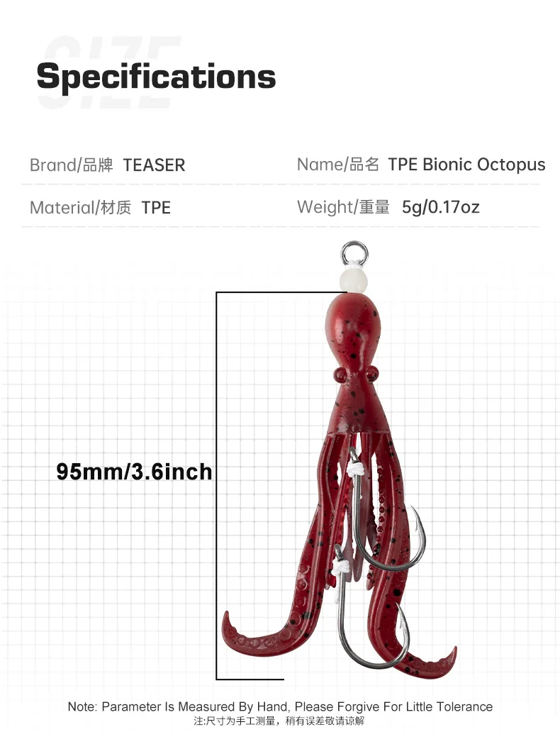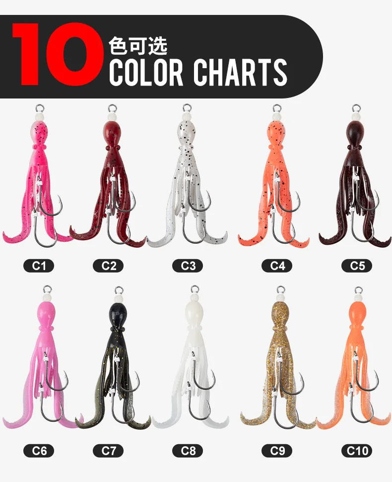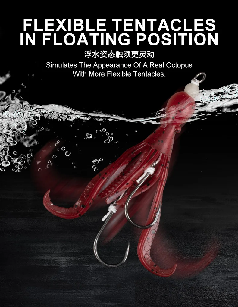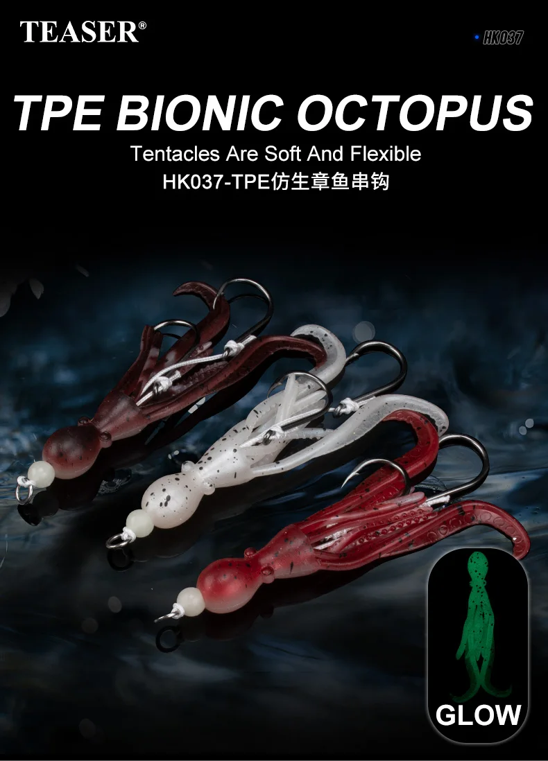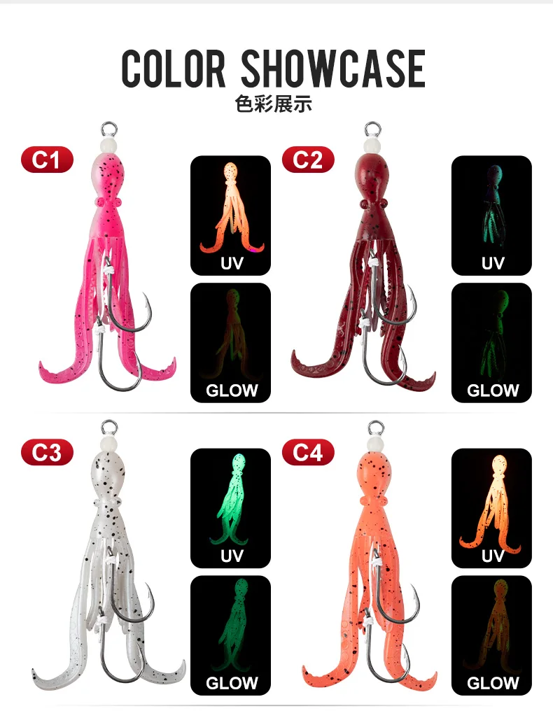 OBSESSION HK037 5g/9.5cm TPE anzuelo de pesca de pulpo biónico 2 unids/bolsa agua salada brillo UV ganchos de asistencia de calamar flexibles suaves