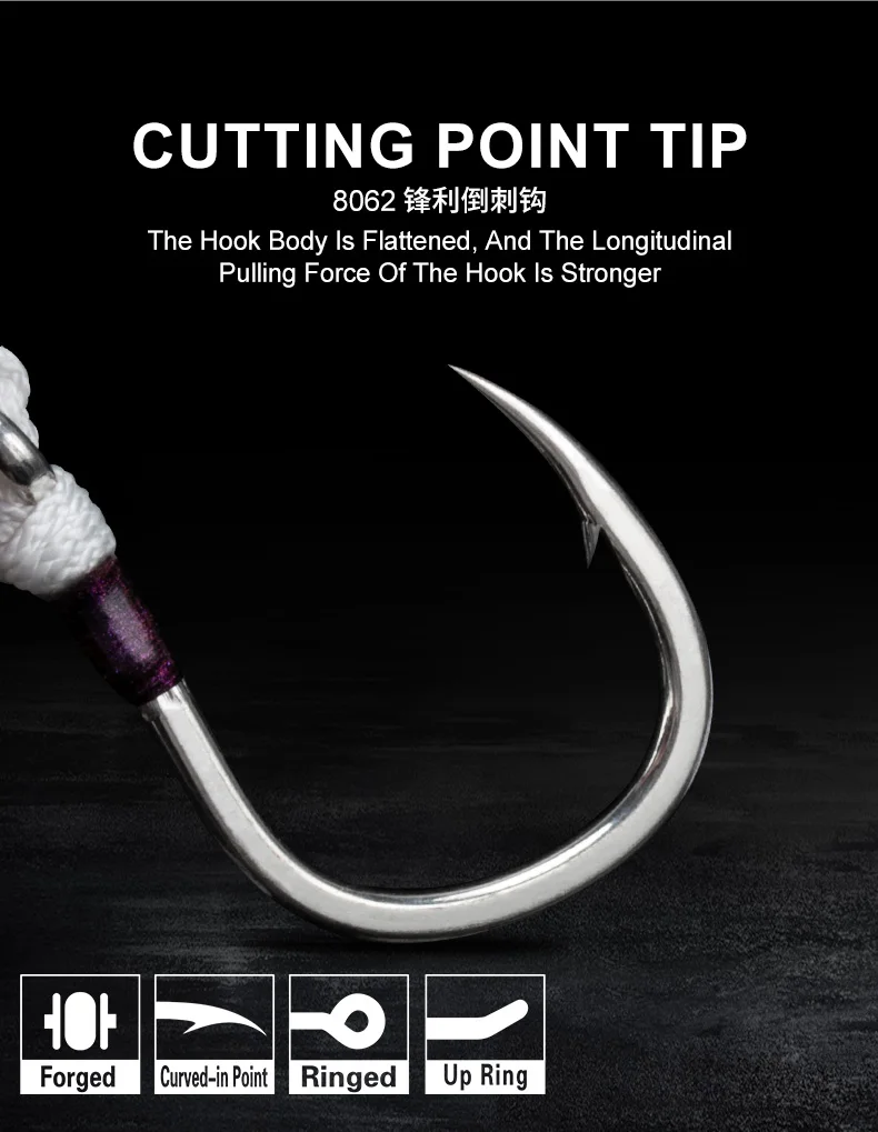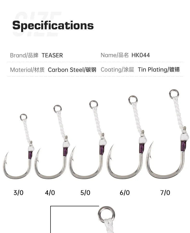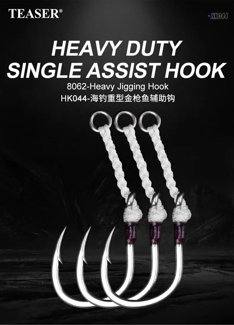 OBSESSION HK044 3 unids/bolsa 3/0-7/0 anzuelos de pesca individuales de jigging de metal lento agua salada gancho de asistencia única de atún preampado de alta resistencia