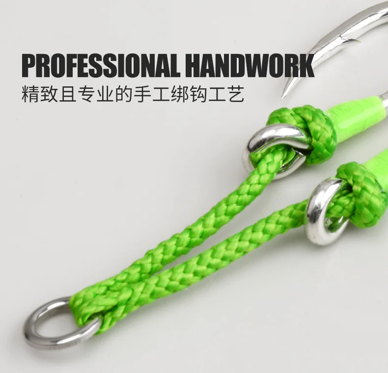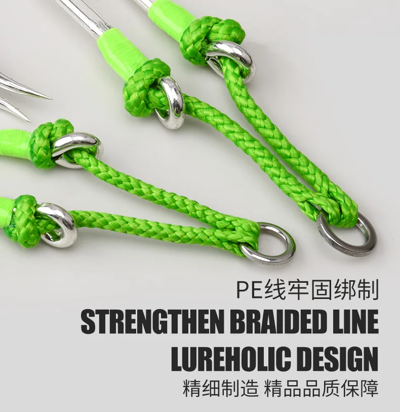 Encuadernación: Reforzada con línea de PE trenzada y fijada con resina epoxi transparente, lo que garantiza que la conexión del gancho sea duradera y resistente.